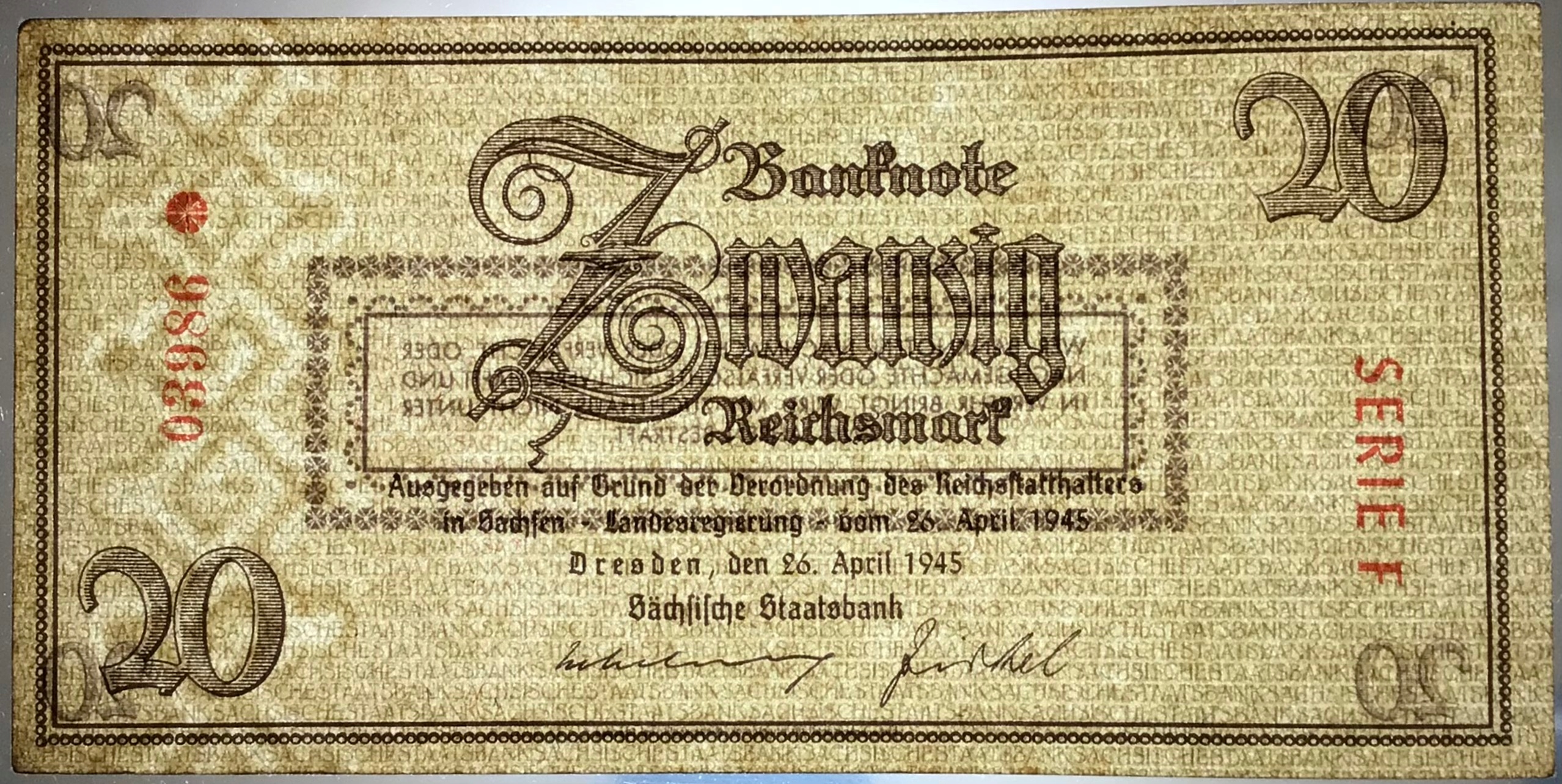 20 Райхмарк 1945 сир Ф Дрезден ст 2