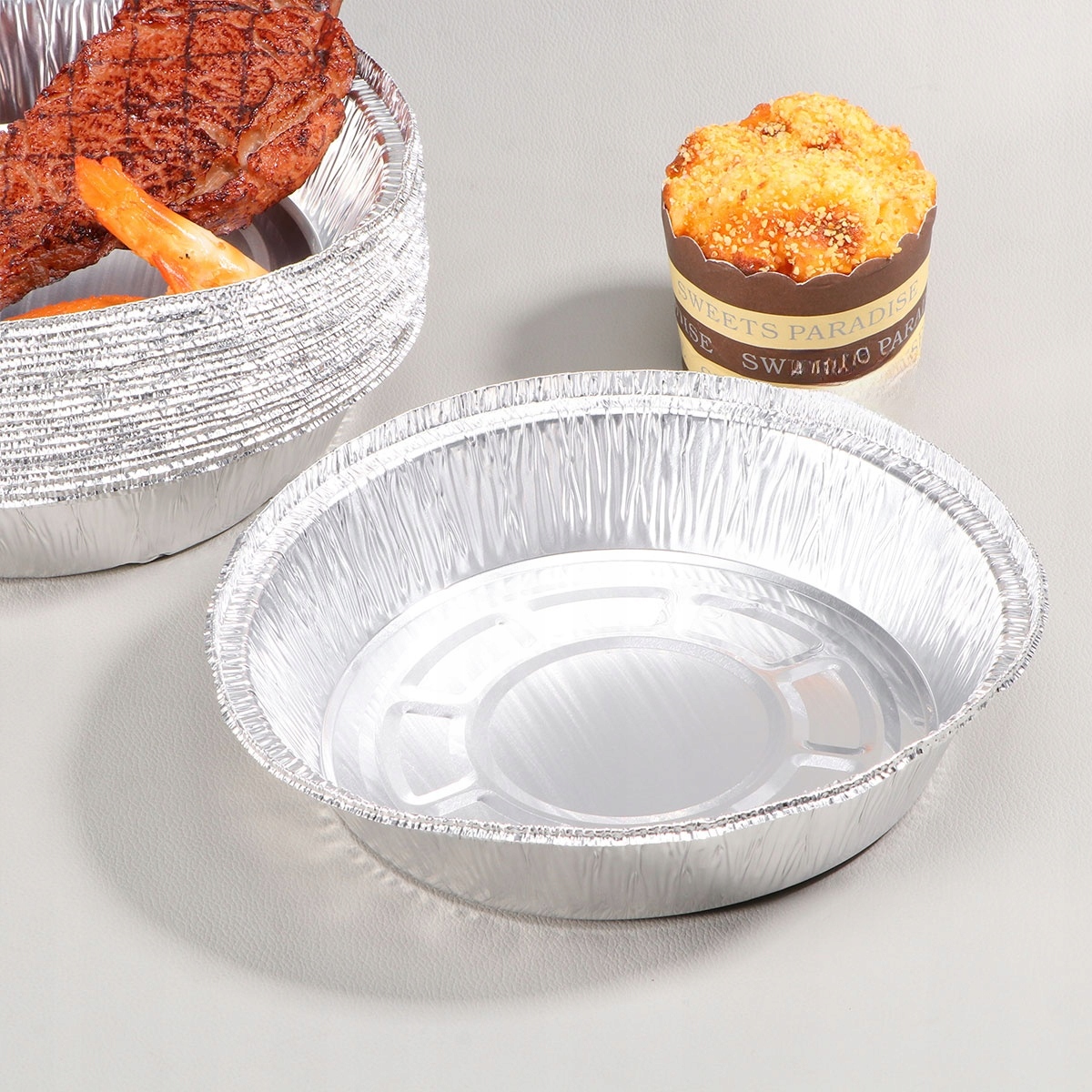 ✅Этот противень из алюминиевой фольги предназначен для муллита. Он водонепроницаемый, нержавеющий и износостойкий, поэтому его можно использовать в качестве сковороды для гриля, подставки для посуды и тарелки. Если хотите, это также может быть тарелка для еды. Пищевой класс без вреда для здоровья.