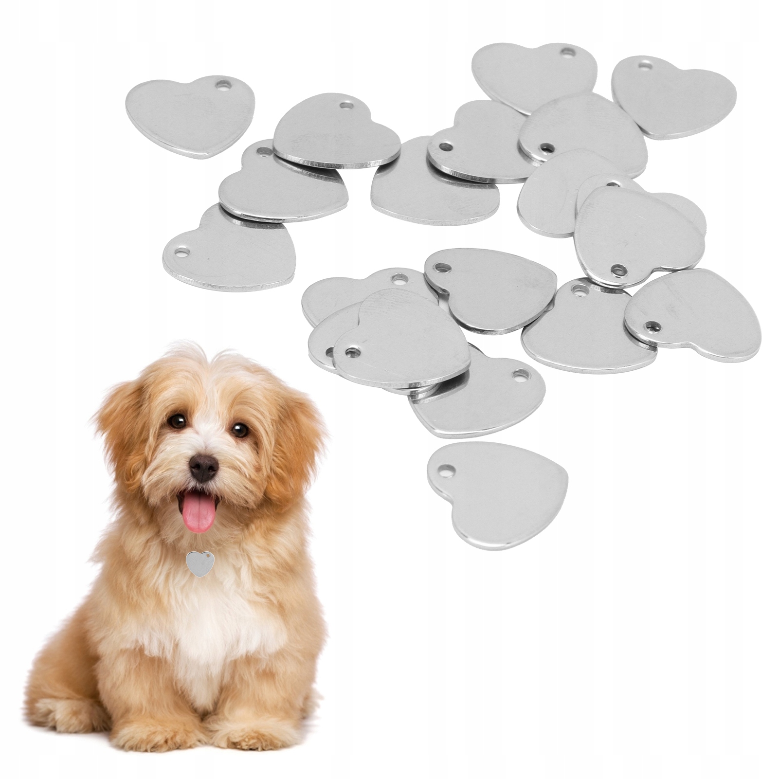 20 шт. идентификационная бирка для домашнего животного из нержавеющей стали в форме сердца для собаки, кошки, идентификационная бирка с именем домашнего животного с отверстием, цвет стали 13 x 14 мм / 0,5 x 0,6 дюйма