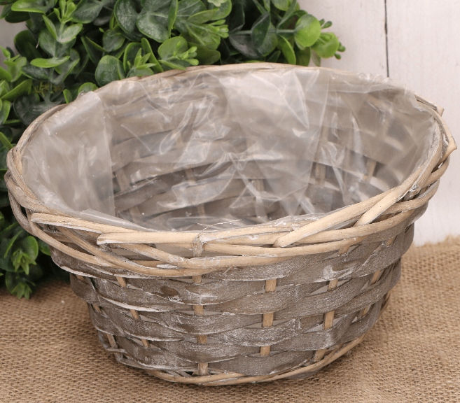 естественная круглая плетеная корзина с фольгой - 20 см