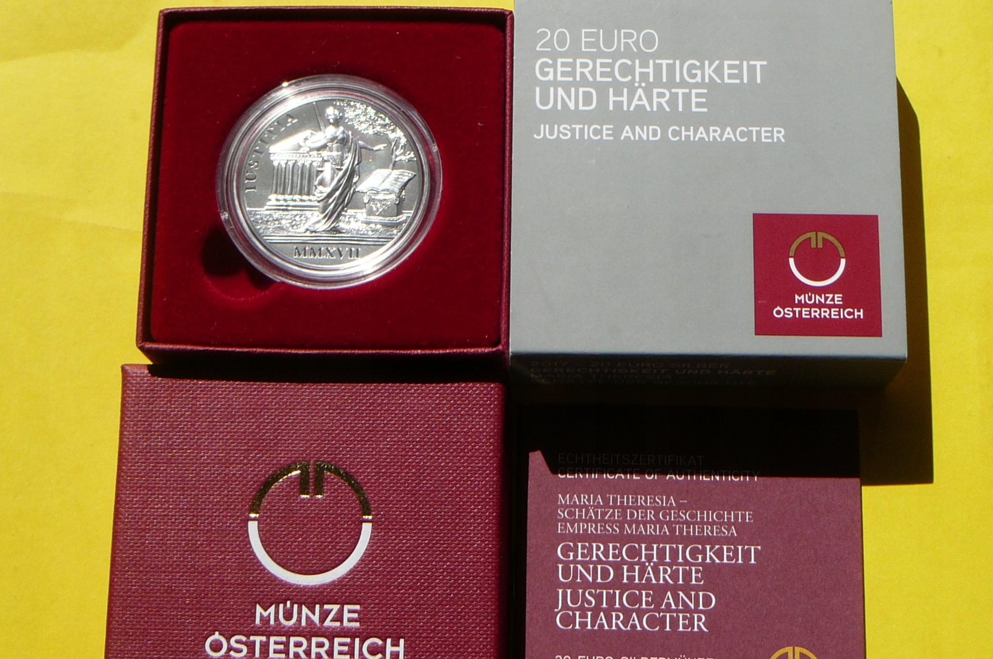 НА АУКЦИОНЕ КРАСИВАЯ ОРИГИНАЛЬНАЯ КОЛЛЕКЦИОННАЯ СЕРЕБРЯНАЯ МОНЕТА - 20 ЕВРО - АВСТРИЯ 2017 - СПРАВЕДЛИВОСТЬ - 300-ЛЕТИЕ ИМПЕРАТРИЦЫ МАРИИ ТЕРЕЗЫ - СЕРЕБРО 925 пробы - МАТОВЫЙ - МЯТЫЙ - КРАСИВАЯ РЕДКОСТЬ + СЕРТИФИКАТ ПОДЛИННОСТИ + КОРПУС + КАРТОН - МОНЕТНЫЙ МОНЕТ НАЦИОНАЛЬНОГО МОНЕТНОГО МОНЕТА АВСТРИИ - МОНЕТЫ ИЗ ЭТОЙ СЕРИИ НА ДРУГИХ АУКЦИОНАХ - ПОСМОТРИТЕ - КОМИССИОННАЯ ПРОДАЖА