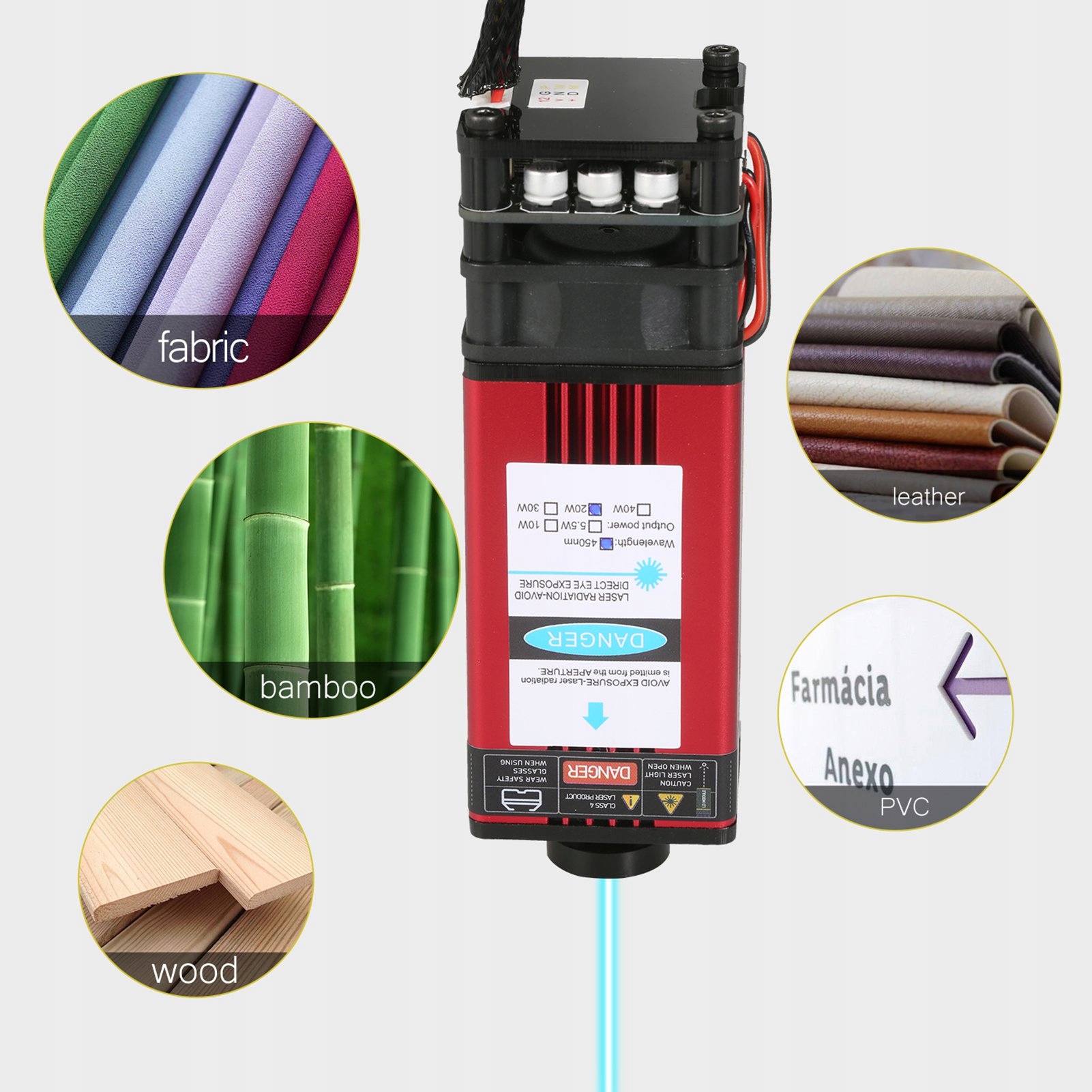 - Профессиональный лазерный модуль, прост в установке, с меньшими потерями, обеспечивает длину волны 450 нм, для эффективной и точной гравировки и резки пластика, дерева, бумаги и т. д.