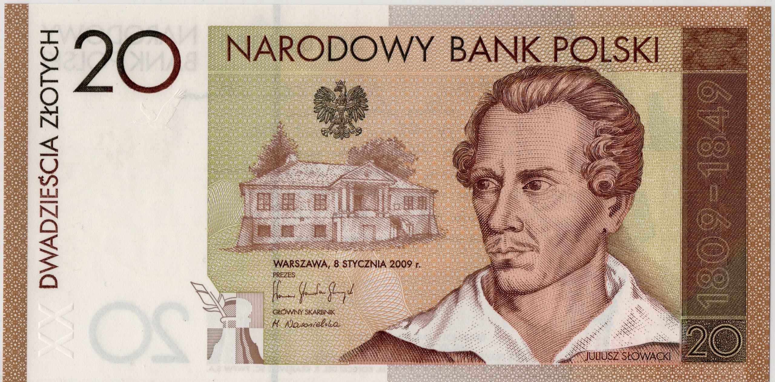 20 злотих - банкнота - Юліуш Словацький - мала цифра
