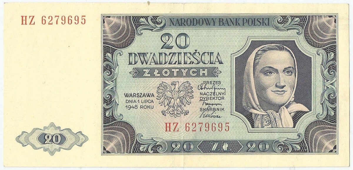 20 злотых 1948 г., серия HZ, состояние 2/2-