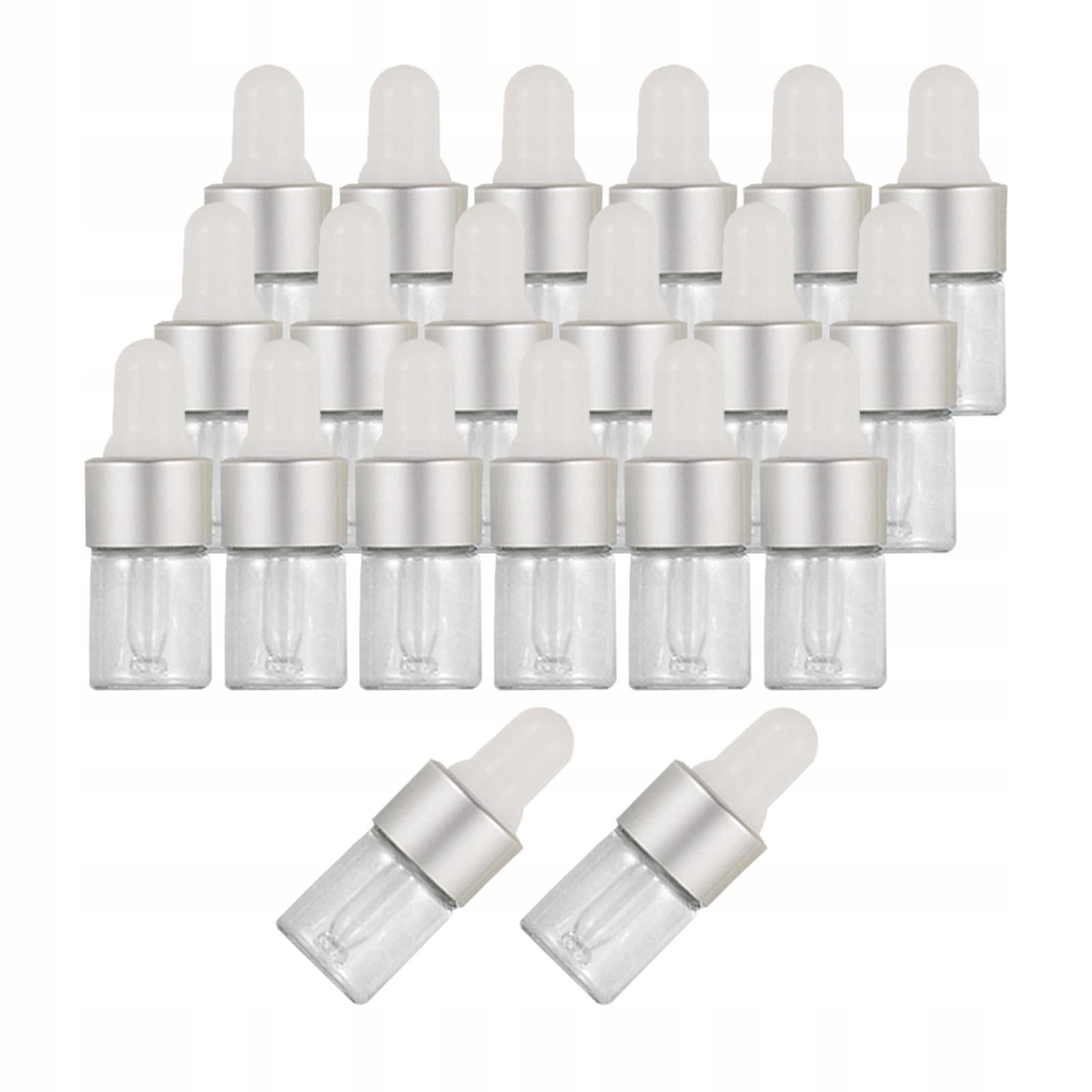 20 шт. пустые стеклянные флаконы-капельницы, контейнеры для парфюмерных масел, жидкостей, серебро, 1 мл