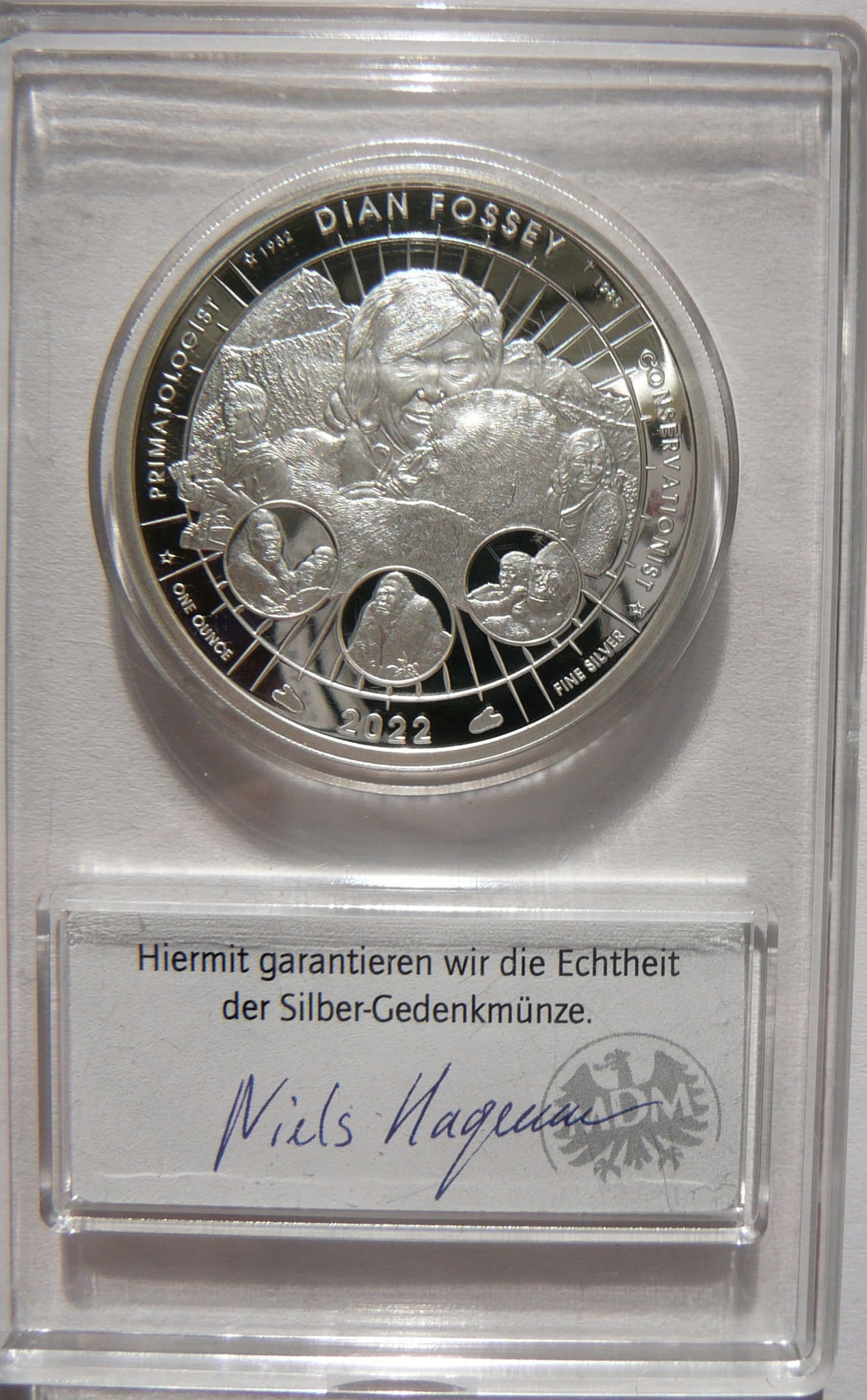 НА АУКЦИОНЕ ПРЕДСТАВЛЯЕТСЯ КРАСИВАЯ ОРИГИНАЛЬНАЯ И РЕДКАЯ КОЛЛЕКЦИОННАЯ СЕРЕБРЯНАЯ МОНЕТА - 200 ФРАНШЕЙ - ДЖИБУТИ 2022 - ГОРИЛЛЫ ДИАНЫ ФОССИ - ЧИСТОЕ СЕРЕБРО 999 ПРОБЫ - ЗЕРКАЛЬНАЯ ПАРКА - УНЦИЯ - МЯТА - РЕДКОСТЬ - ОЧЕНЬ РЕДКОЕ - ИЗДАНИЕ ВСЕГО 2500 ШТУК!! -МОНЕТЫ ИЗ ЭТОЙ СЕРИИ ПРЕДЛАГАЮ НА ДРУГИХ АУКЦИОНАХ - ПОЖАЛУЙСТА, Оформите заказ