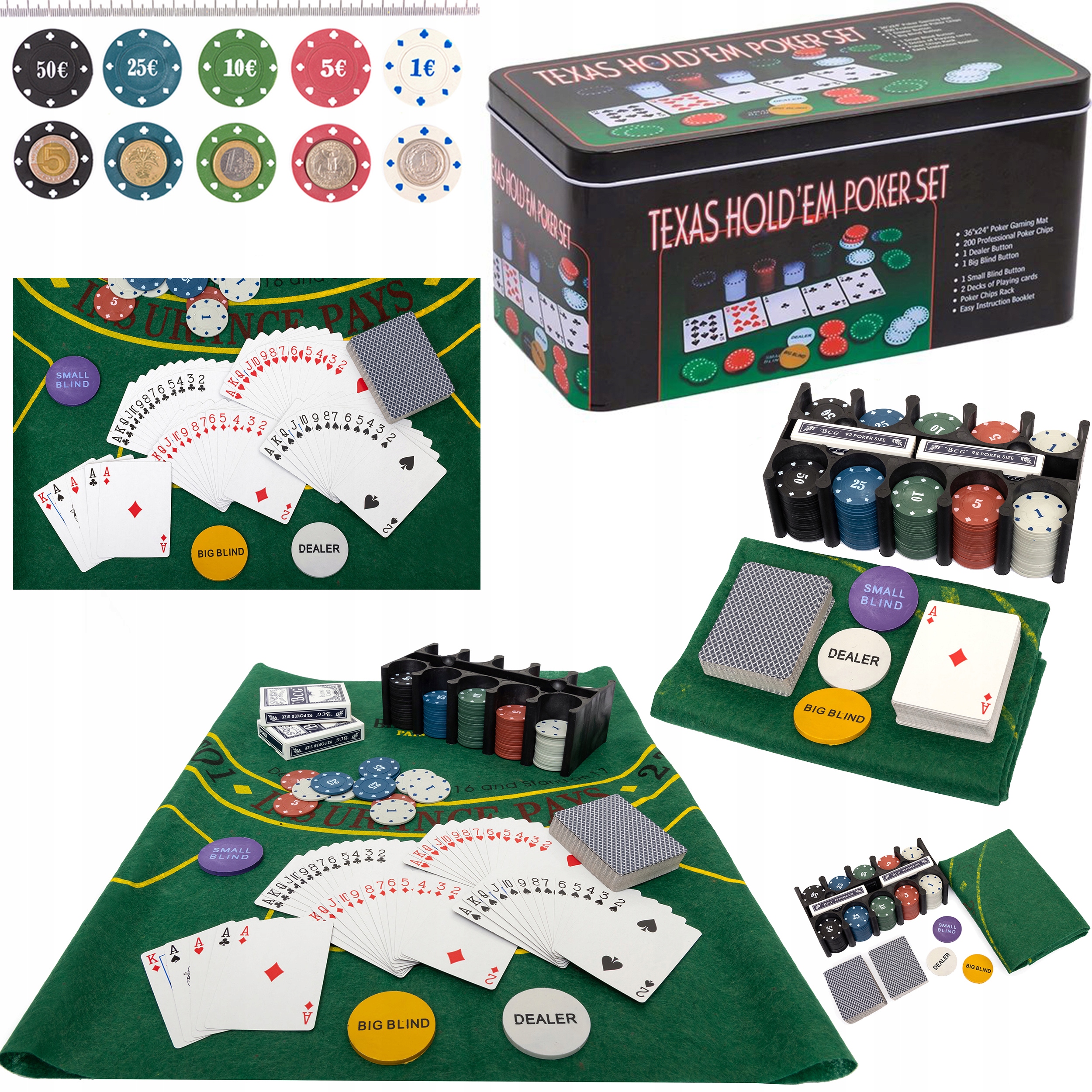 ✅Покерные фишки, 200 карт, покерный коврик, 2 колоды