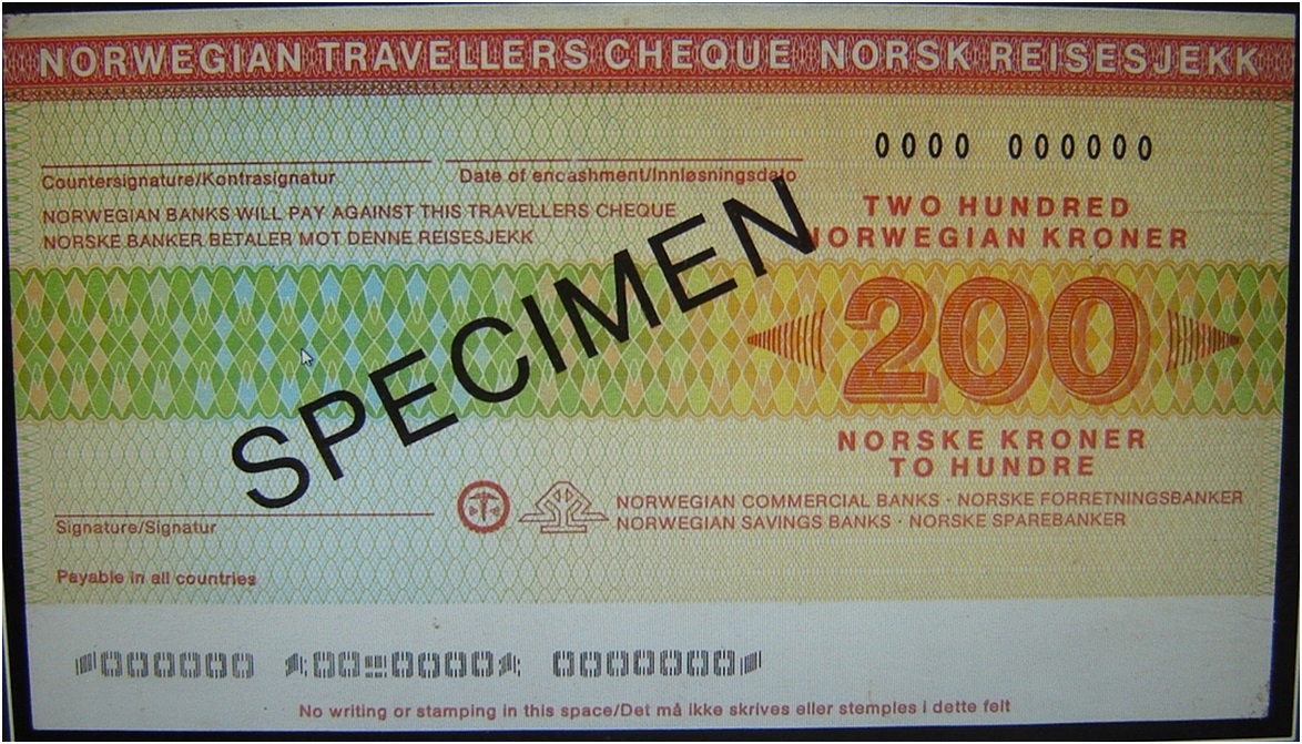 200 KORON Travellers Check of Norsk Рейсесіекк