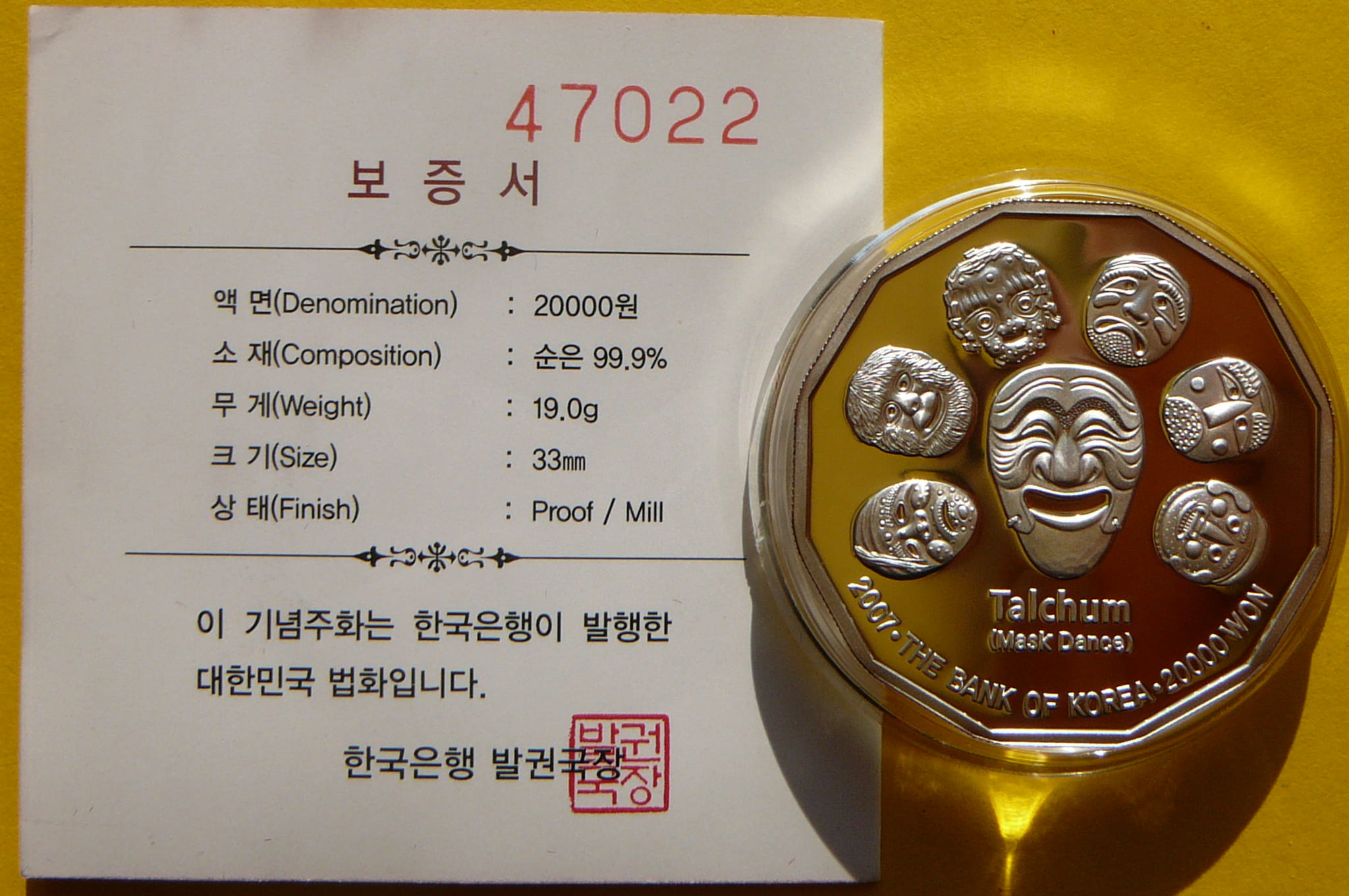 ВЫСТАВЛЕНА НА АУКЦИОН КРАСИВАЯ ОРИГИНАЛЬНАЯ РЕДКАЯ КОЛЛЕКЦИОННАЯ МОНЕТА - 20 000 ВОН - КОРЕЯ 2007 г. - ТАНЕЦ ТАЛЬХУМОВОЙ МАСКИ - ЧИСТОЕ СЕРЕБРО 999 - ЗЕРКАЛЬНАЯ ПЕЧАТЬ - МЯТА - РЕДКАЯ - РЕДКАЯ - МАЛОЕ СЛУЖЕНИЕ -Я ВЫСТАВЛЯЮ МОНЕТЫ ИЗ ЭТОЙ СЕРИИ НА ДРУГИЕ АУКЦИОНЫ - ПОЖАЛУЙСТА, ПОСМОТРЕТЬ