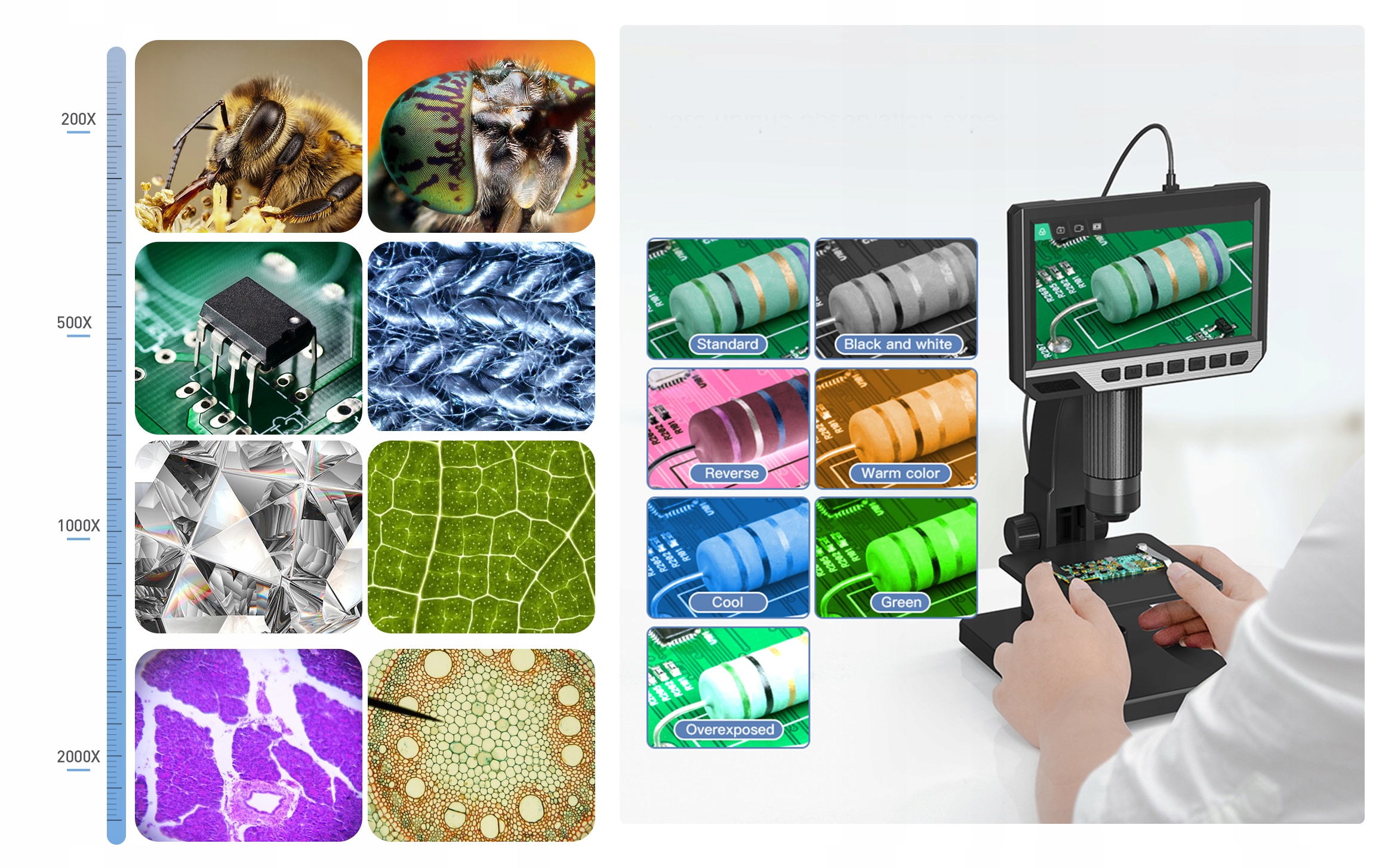 ⭐ Профессиональный цифровой микроскоп с 2000-кратным увеличением, 7-дюймовым IPS HD-экраном, светодиодной подсветкой и функциями ВИДЕОЗАПИСИ и фотосъемки.