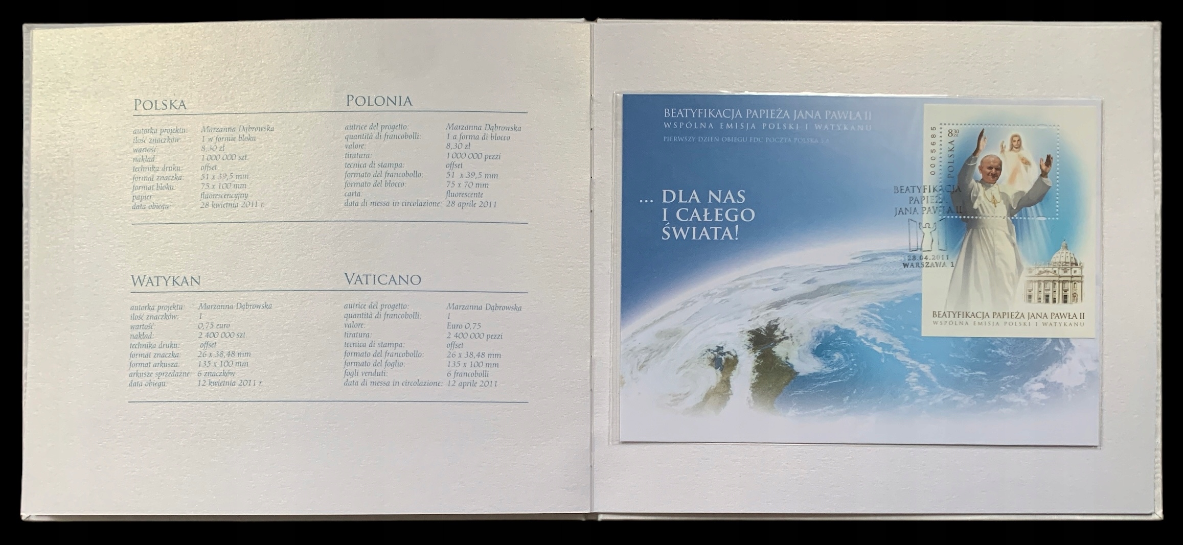 2011 Битфификация папы JP II Fi Block 228 ** + Block Vatican + FDC Папка