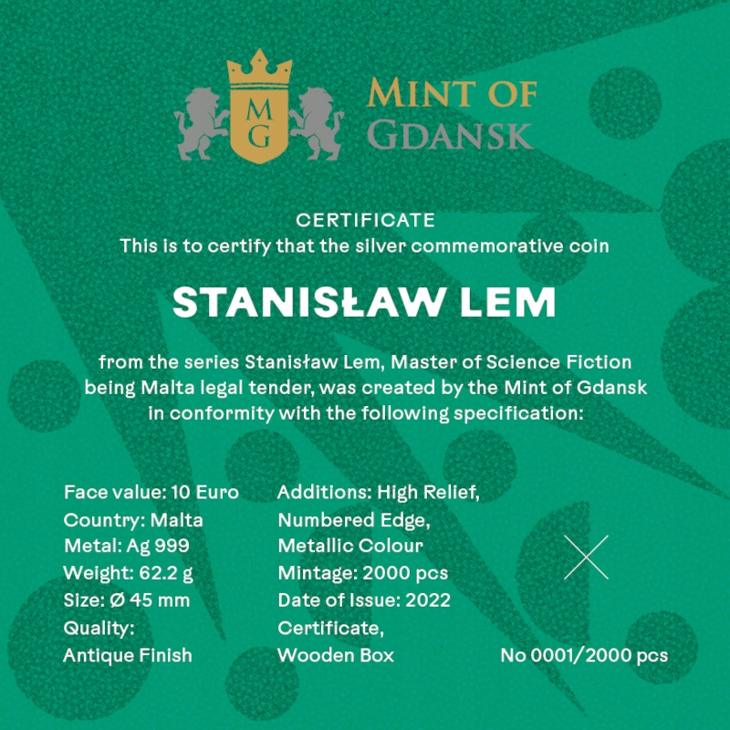 2022 Мальта 10 евро Станислав Лем 2 уз