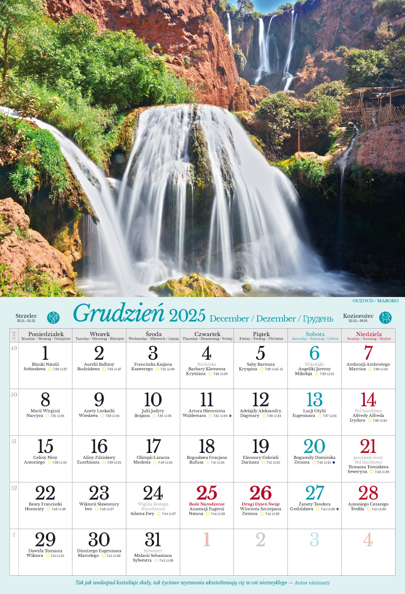 2025 КАЛЕНДАР НАСТІННИЙ 6 ДОШОК ПО СВІРТЛІ ЧАРІВНІ ВОДОПАДІ ДЗЕН ПРИРОДА