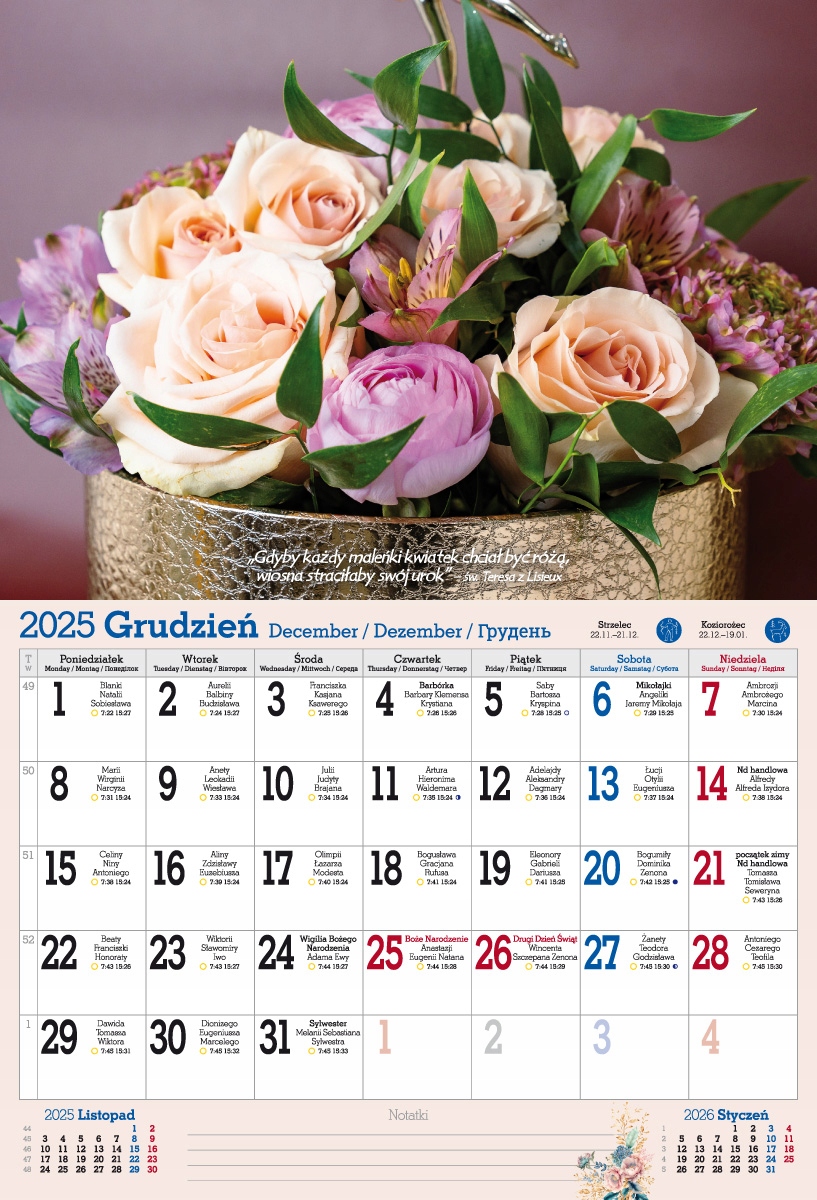 Просматривая «2025 НАСТІННИЙ КАЛЕНДАР КВІТИ ДЛЯ ВАС 13 НАСТОЛЬНИХ КВІТОК БУКЕТІВ КВІТІВ», вы можете быть уверены, что данный товар из каталога «Настенные календари» будет доставлен из Польши и проверен на целостность. В цене товара, указанной на сайте, учтена доставка из Польши. Внимание!!! Товары для Евросоюза, согласно законодательству стран Евросоюза, могут отличаться упаковкой или наполнением.