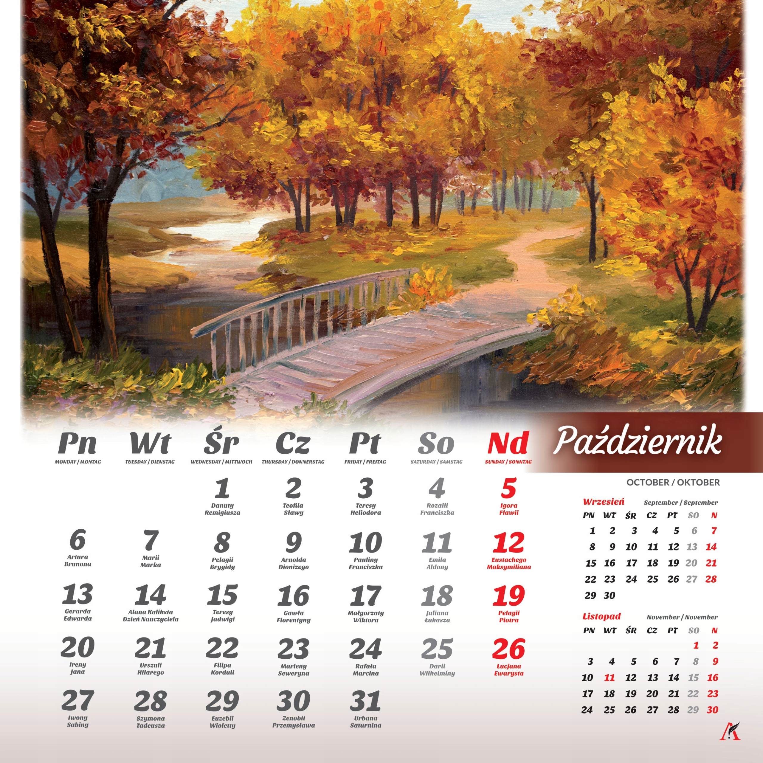 ясно, жирный шрифт основного месяца, предыдущий месяц и следующий в уменьшенной версии и спираль для легкого перевода страниц. H2>