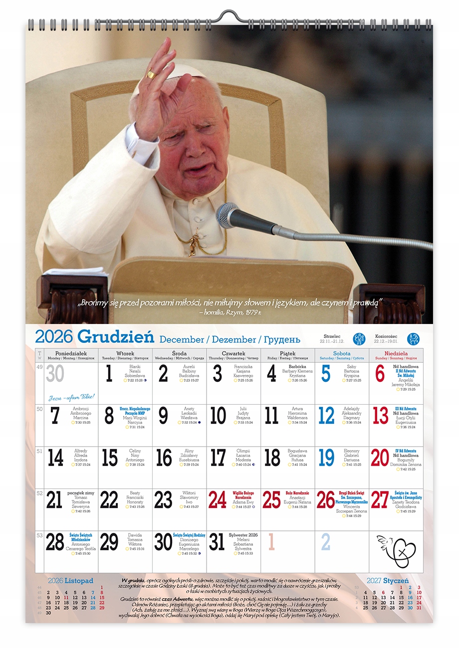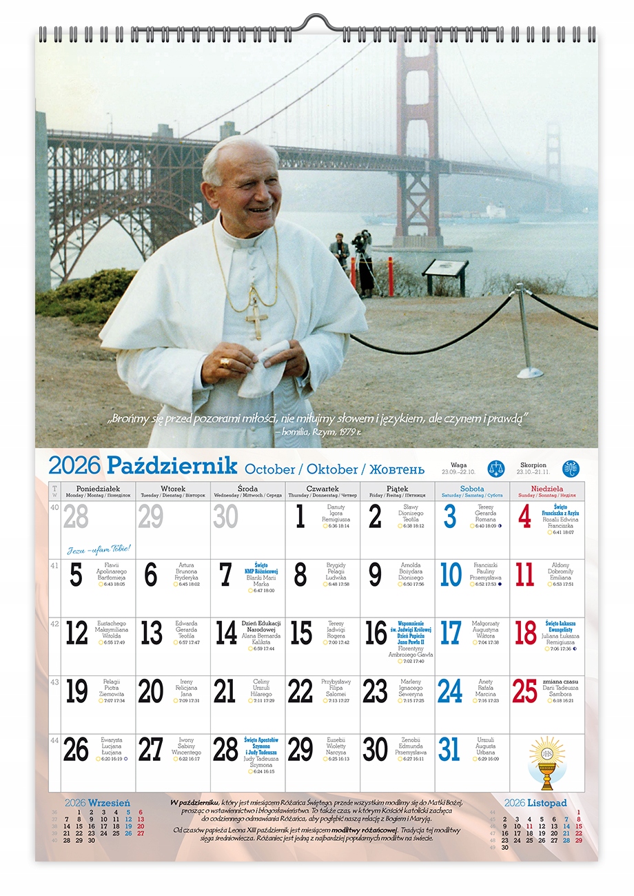 КРАСИВЫЙ КАЛЕНДАРЬ, НАСЫЩЕННЫЙ ЦВЕТАМИ ФОТОГРАФИЙ НАШЕГО СВЯТОГО ИОАННА ПАВЛА