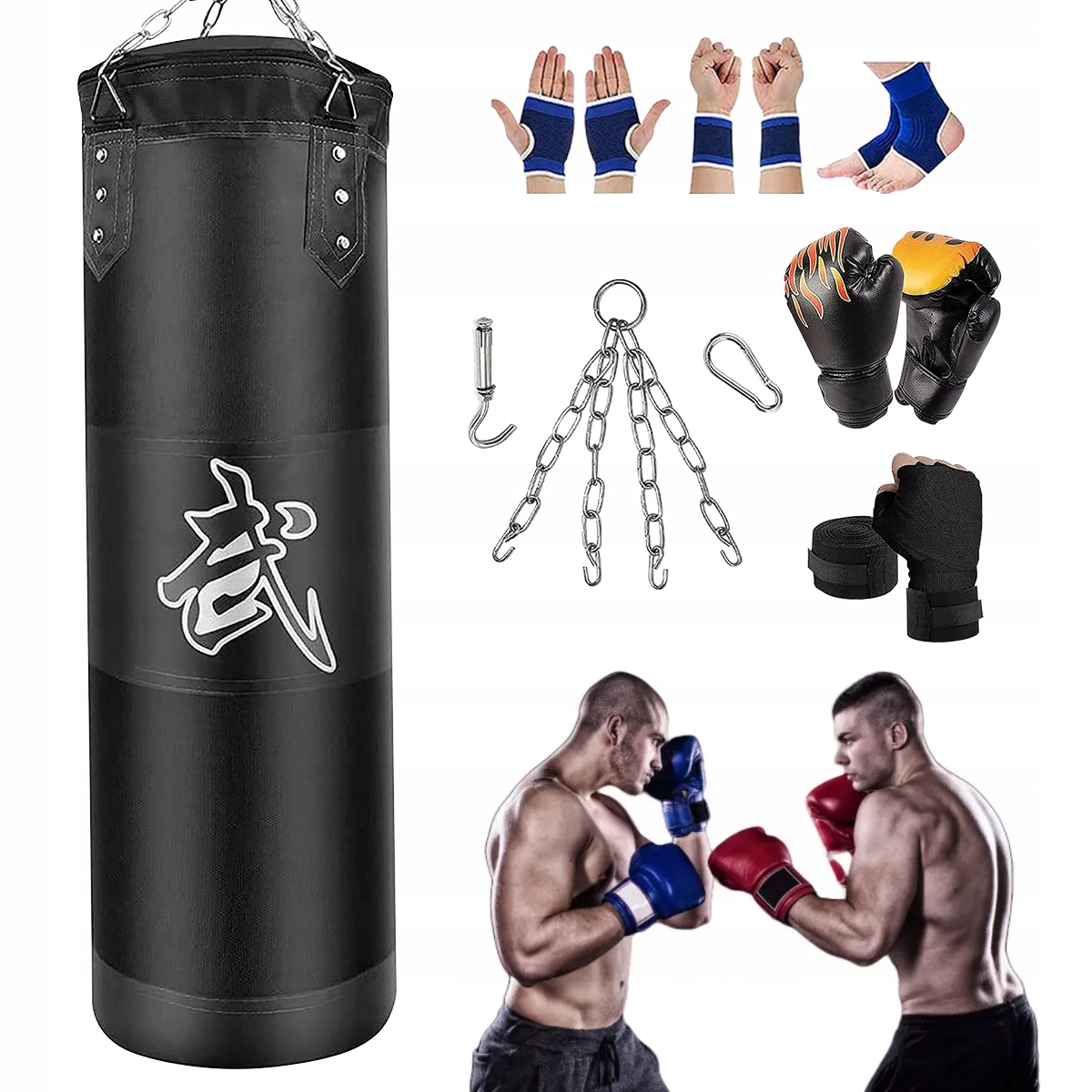 Для лучшей защиты при боксе и ударах ногами в комплект входят боксерские перчатки, бинты для рук, вешалка для сумки, 4-слойная стальная цепь, карабин, защита запястья, защита руки и защита костяшек пальцев. Кроме того, амортизирующая набивка из пеноматериала выдерживает самые сильные удары дома или в тренажерном зале и предотвращает травмы во время бокса и ударов ногами.