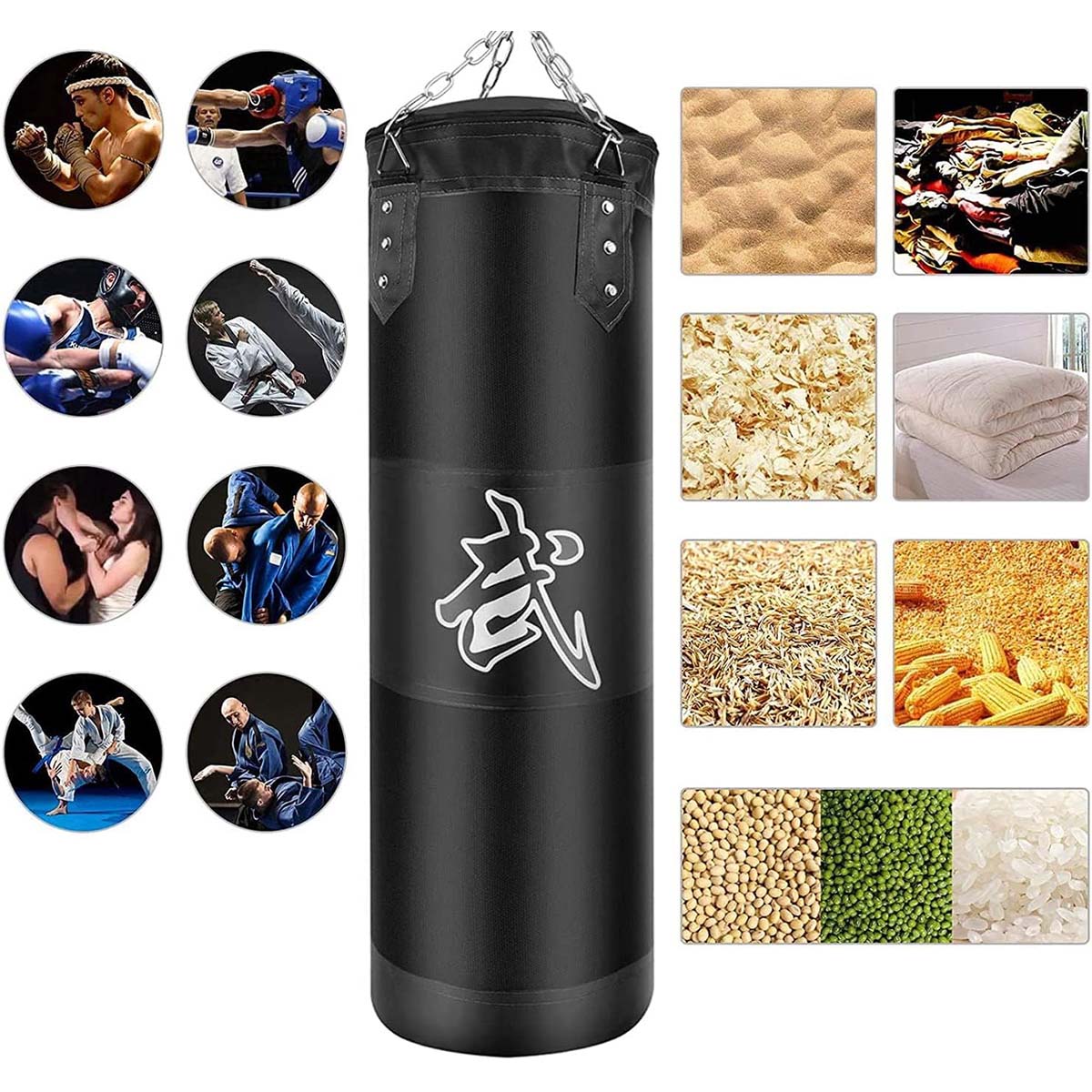 ✅Тяжелая боксерская груша для взрослых, подростков, детей с боксерской грушей для использования в помещении и в саду. Ненаполненная боксерская груша с боксерскими перчатками, бинтами, цепью, потолочным крюком для смешанных единоборств, кикбоксинга, тайского бокса, каратэ, тхэквондо, 武 - кунг-фу (черный)
