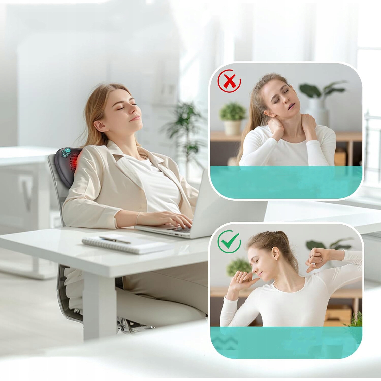 ❤️【Глубокий массаж шиацу с 8 узлами】 - Наша массажная подушка с 8 3D-роликами для разминающего массажа на 360° может имитировать настоящие человеческие руки, обеспечивая профессиональный глубокий разминающий массаж тканей различных частей тела, таких как шея, плечи, спина и поясница. Глубокий и ритмичный 3D-массаж успокаивает боль и напряжение мышц по всему телу.