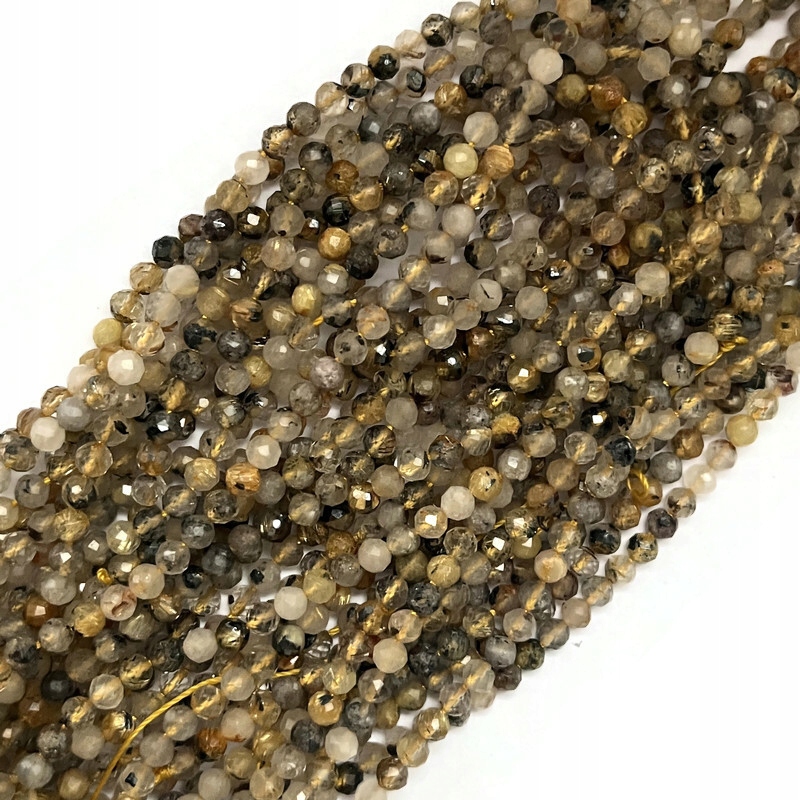 2032- Кварц с рутилом, граненый шарик, ок. 4 мм, струна, ок. 37-38 см.