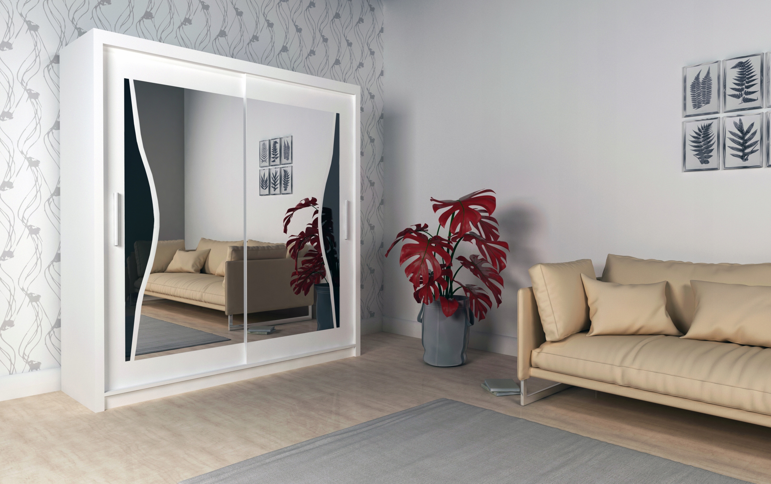 Двухдверный современный шкаф с двумя зеркалами, оснащенный прочной системой раздвижных дверей, – идеальное решение для людей, ценящих функциональность и пространство.