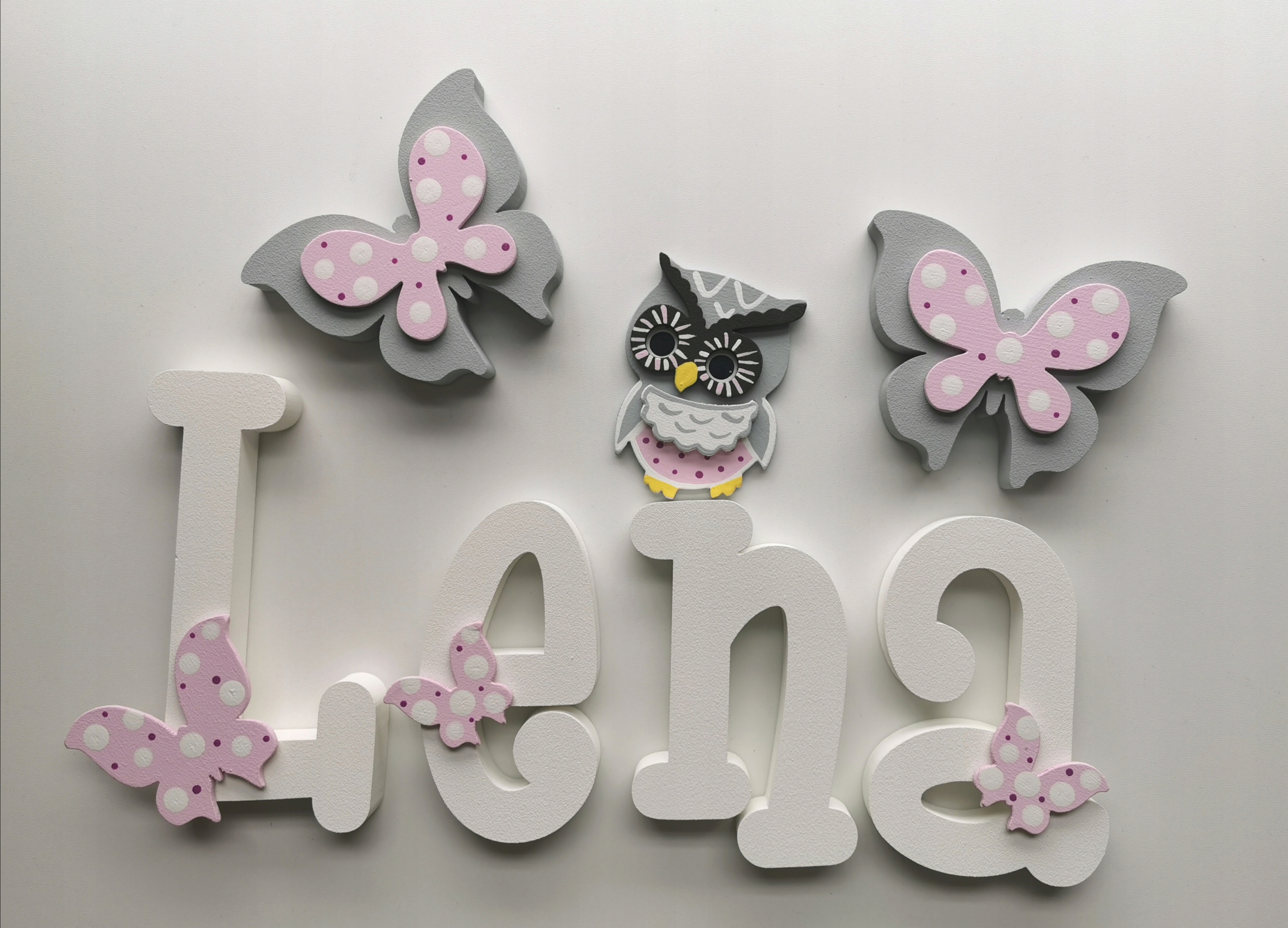 Для каждого имени куплено ( минимум 3 буквы) вы получаете два больших декора по 10 см над надписью и несколько маленьких декоров, приклеенных к буквам в местах разрезов как в наших проектах ниже в галерее.