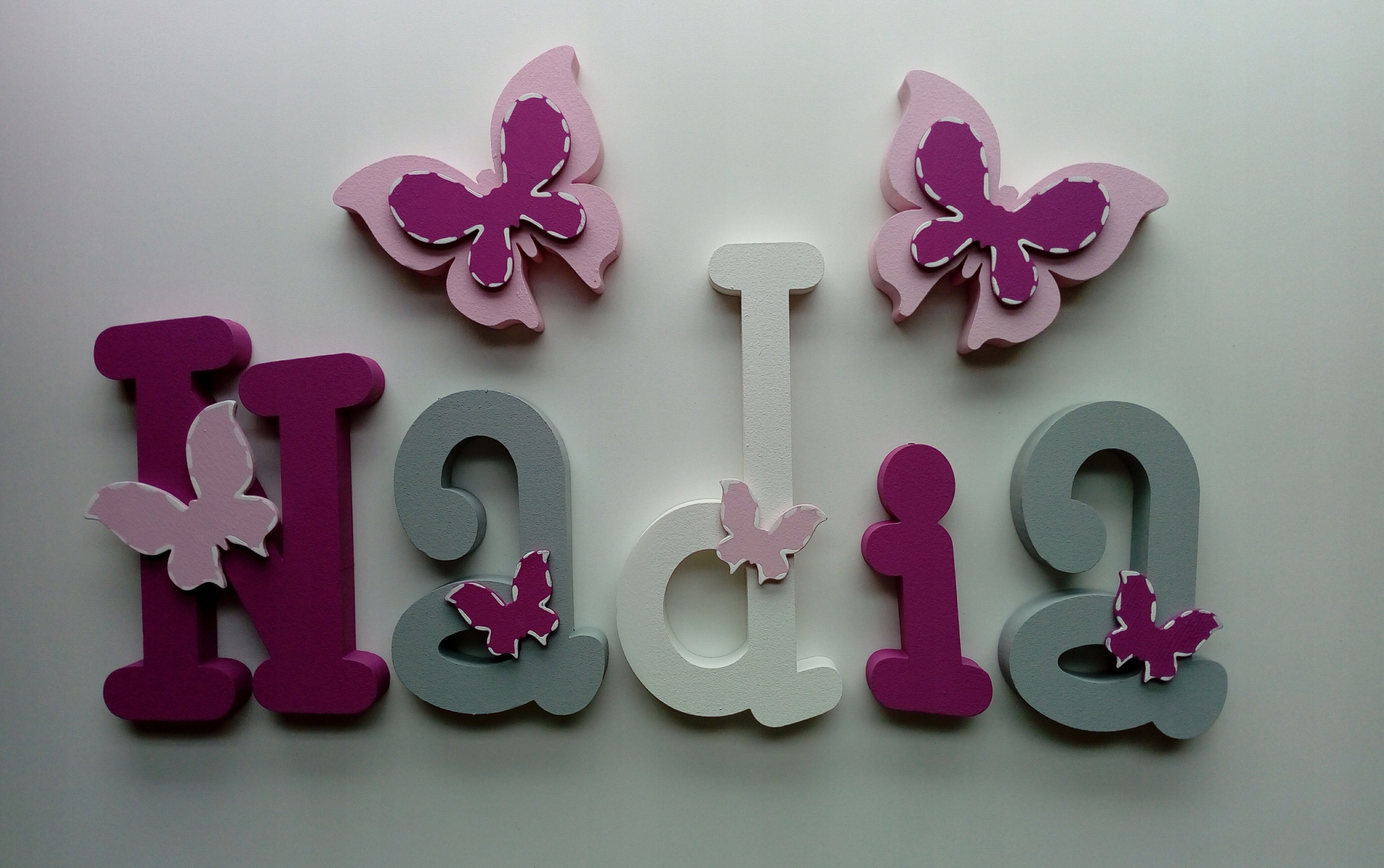 Для каждого купленного имени (хотя бы 3 буквы) вы получаете два больших декора по 10 см над надписью и несколько маленьких декоров, приклеенных к буквам в местах срезов, как в наших проектах ниже в галерее.