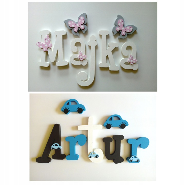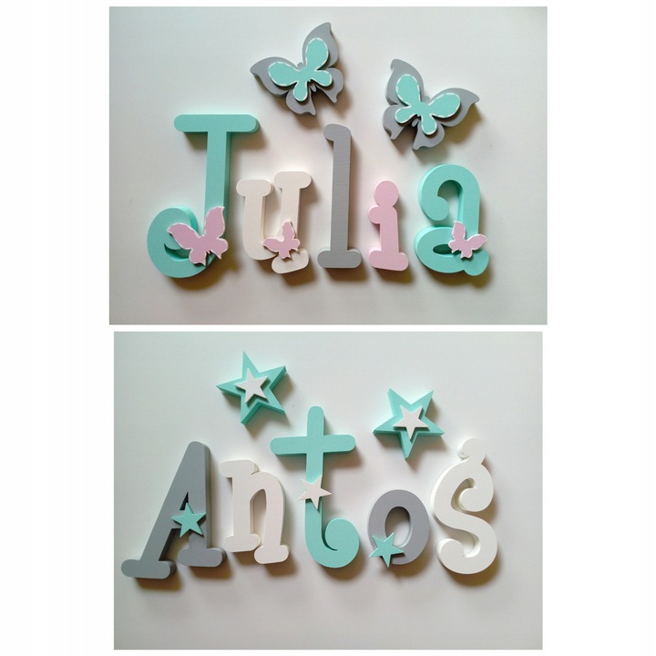 Для каждого имени куплено ( минимум 3 буквы) вы получаете два больших декора по 10 см над надписью и несколько маленьких декоров, приклеенных к буквам в местах разрезов как в наших проектах ниже в галерее.