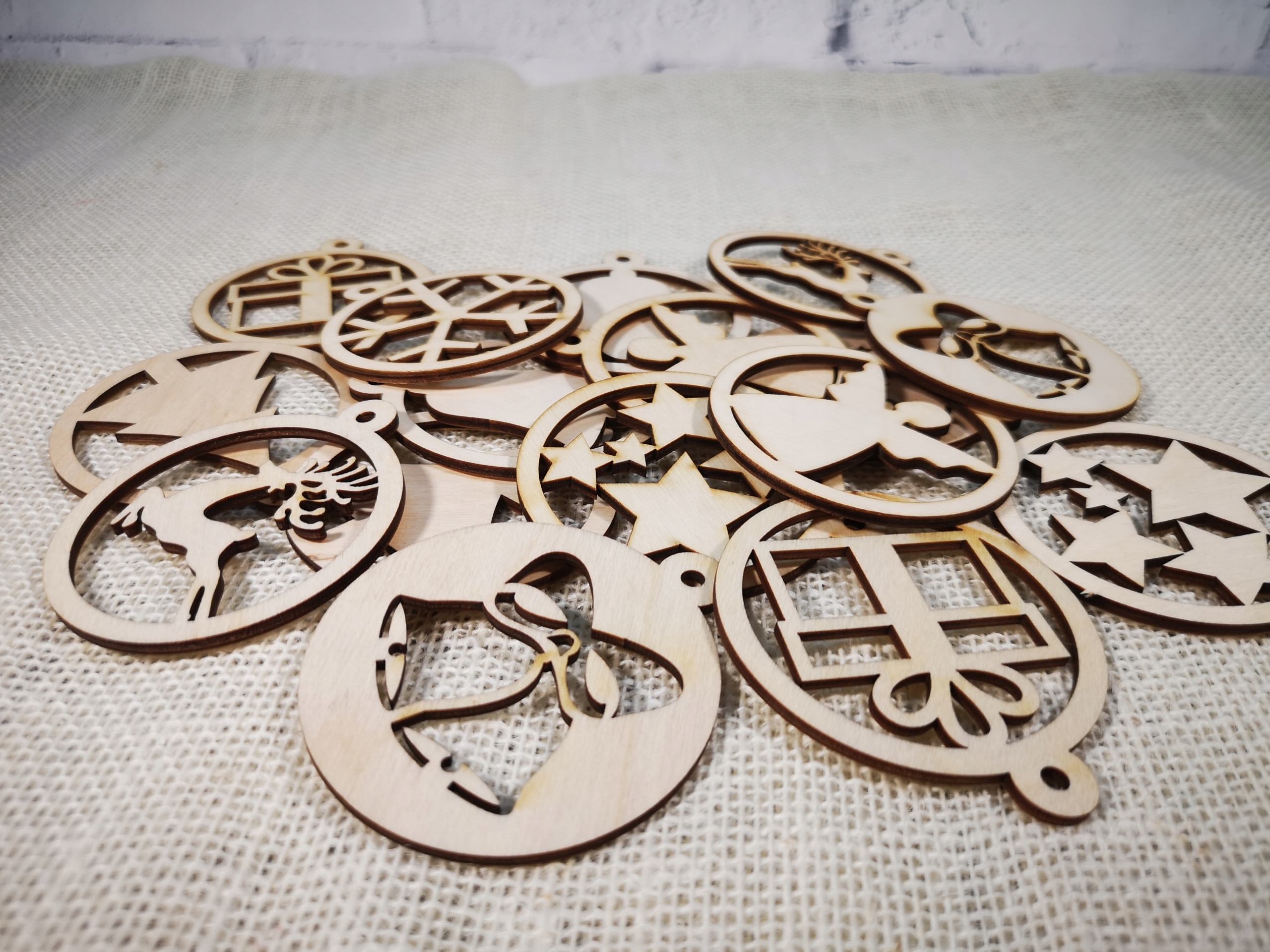 Красивые деревянные игрушки на елку. Лазерная резка. Вы можете повесить ее в сыром виде или украсить в технике декупаж по своему желанию.