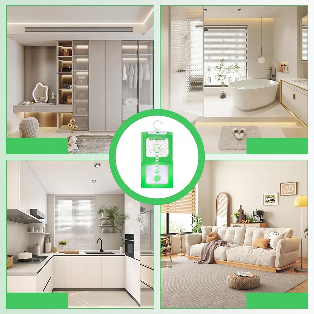 Лучшее средство для удаления влаги в шкафах и ящиках.Удаляет излишнюю влагу и предотвращает образование плесени на одежде и неприятного запаха влаги в шкафу. Инновационная форма позволяетлегко подвешивать, а пакет с грануламиотлично впитывает и удерживает влагу, предотвращая протекание. Он такжешироко используется в автомобилях и фургонах.