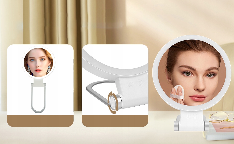 💡РЕГУЛИРОВКА НАКЛОНА:Наклон зеркала полностью регулируется, что означает, что вы можете установить его в любое положение, чтобы лучше всего помочь вам в уходе за красотой. На задней стороне зеркала есть ножка, которую вы можете свободно перемещать, чтобы установить зеркало под идеальным для вас углом!