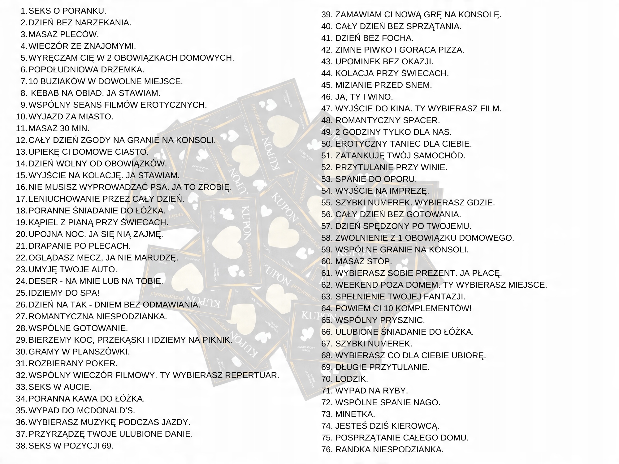 - 20 LOVE COUPONS в элегантном конверте, под каждой скретч-картой один из 69 сюрпризов!< /li>
