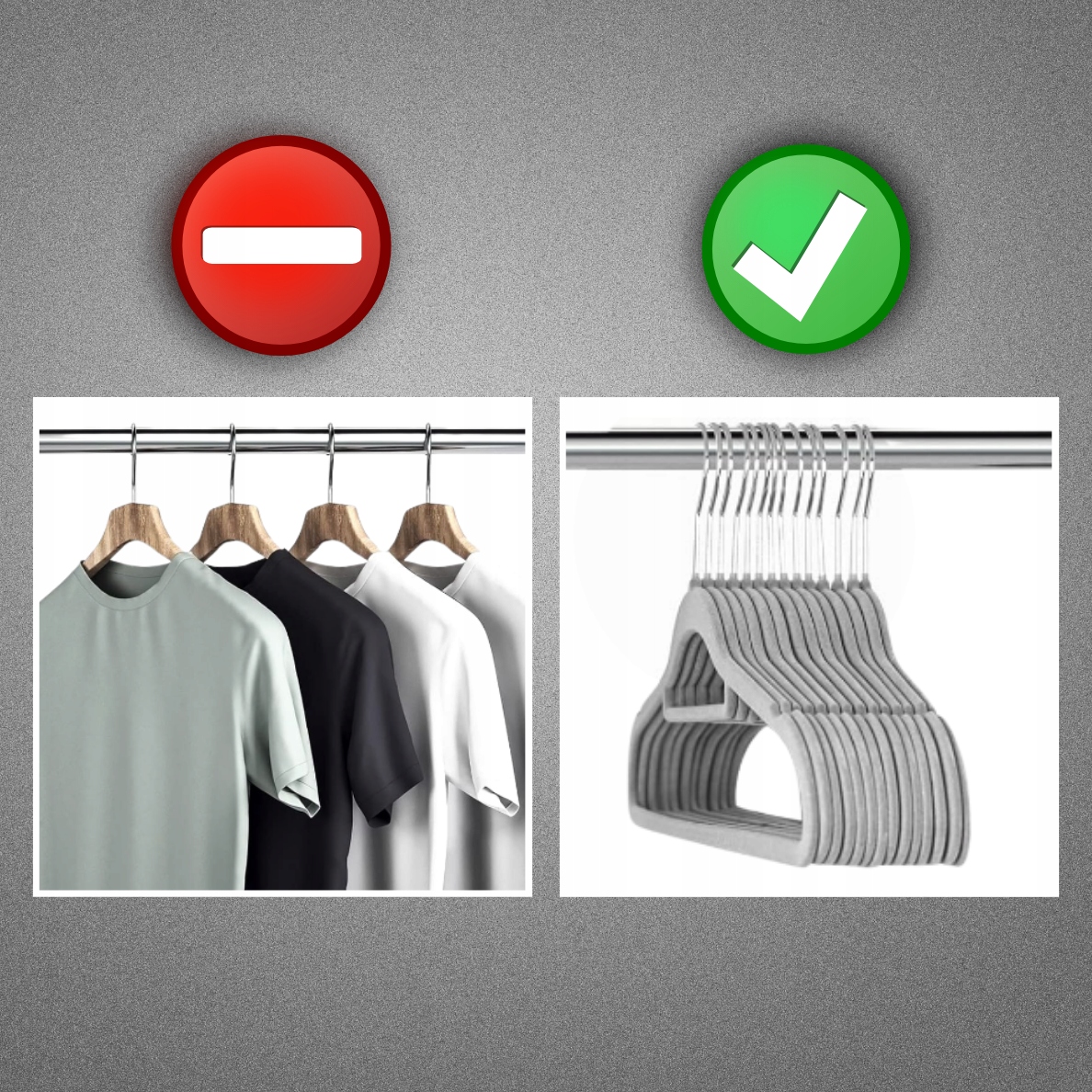 Если вам надоел беспорядок и нехватка места в гардеробе или шкафу, наши бархатные вешалки для вас. Они тонкие и очень прочные, что позволяет сэкономить место и лучше организовать одежду.