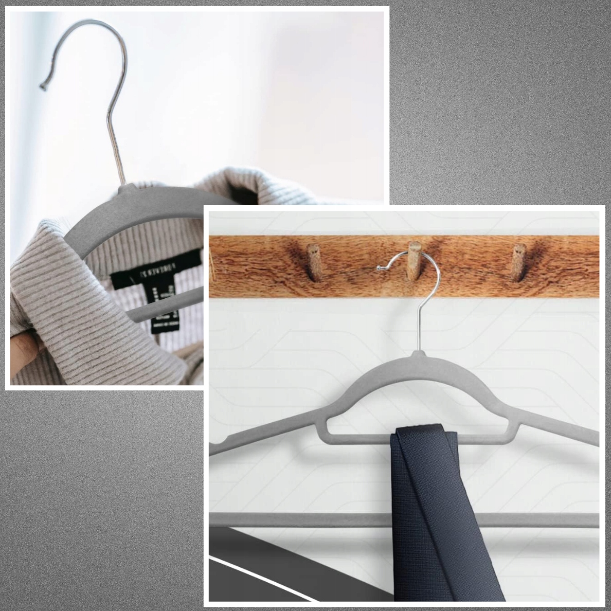 МЕГА НАБОР ИЗ 20 ПРЕДМЕТОВ ВЕЛЮРОВЫХ ВЕШАЛОК ДЛЯ ОДЕЖДЫ СЕРОГО ЦВЕТА