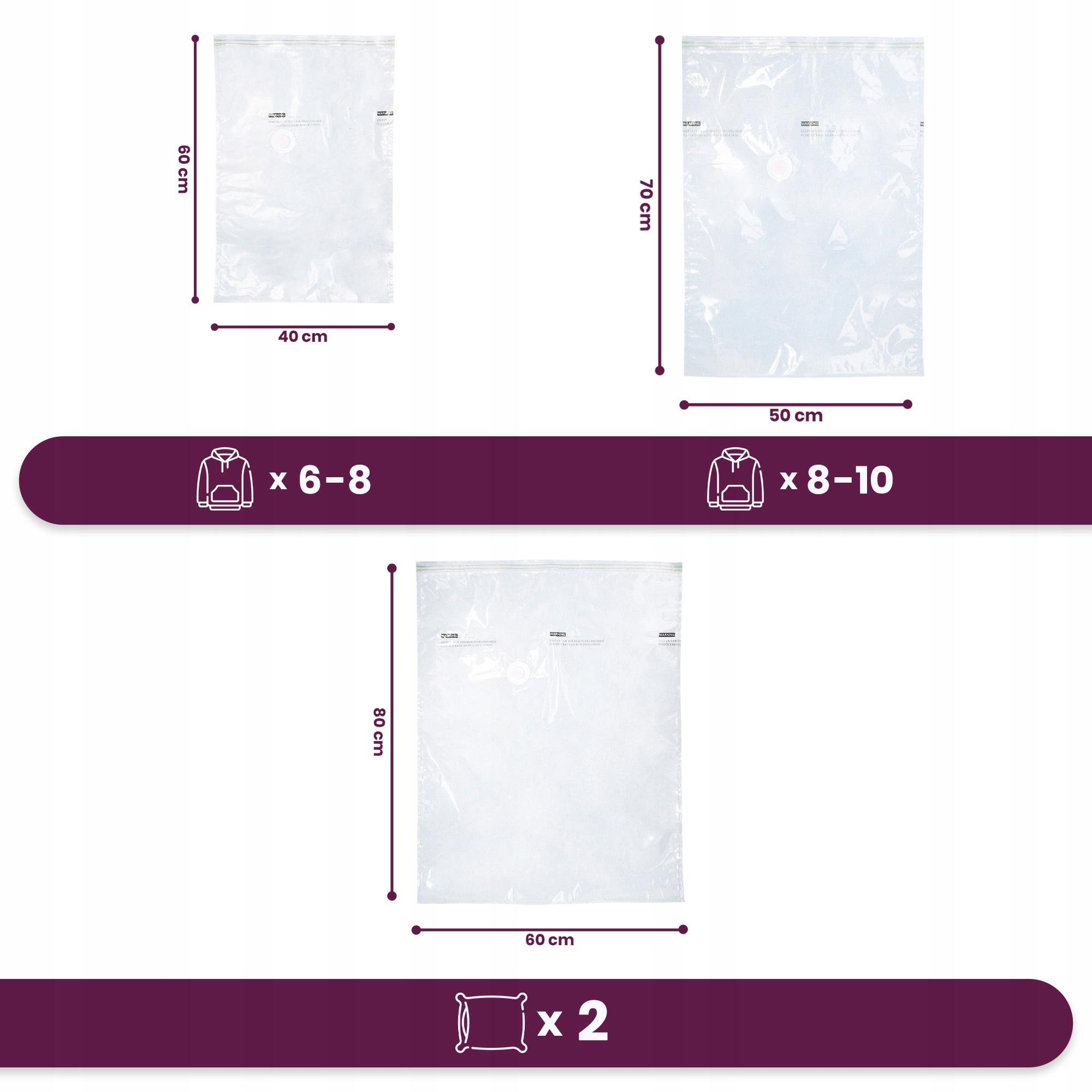 Вакуумные пакеты для одежды 10 х XS (40 см х 60 см), 8 х S (50 см х 70 см), 2 х М (60 см х 80 см) с клипсами 4 шт.