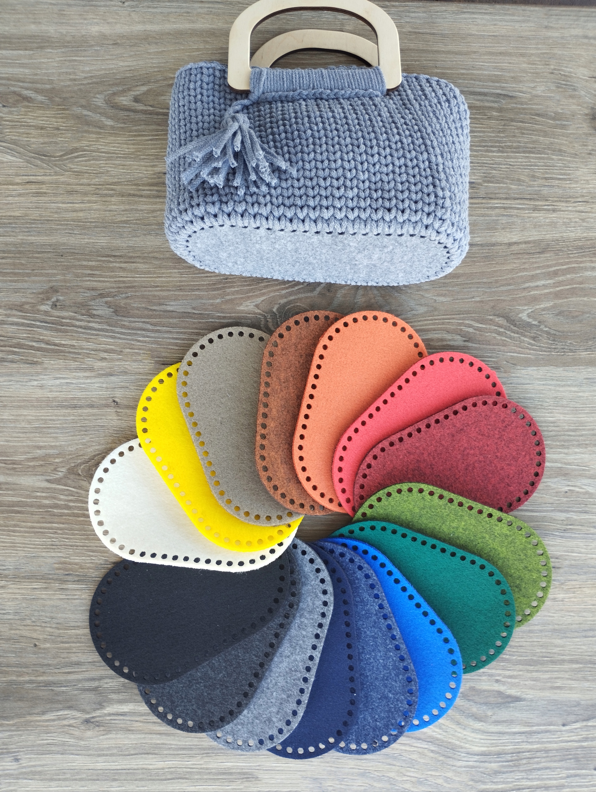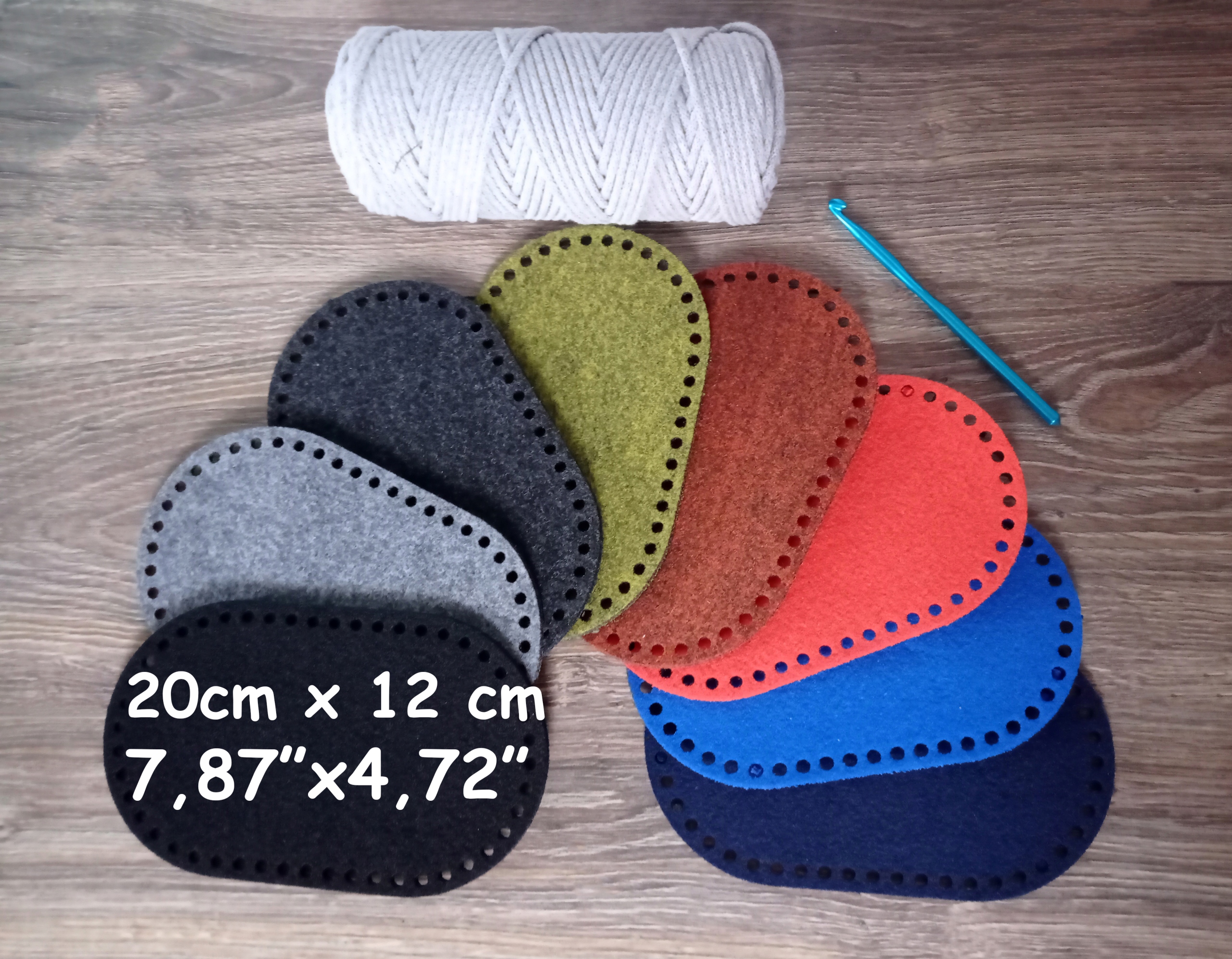 Фетковое основание для сумочки для вязания крючком для 3 мм, 2 мм или футболка. Благодаря войлочной основе сумка получит идеально овальное дно и дополнительно экономит количество используемой струны, и, кроме того, сумка будет легче, чем изготовлена только с помощью струны.