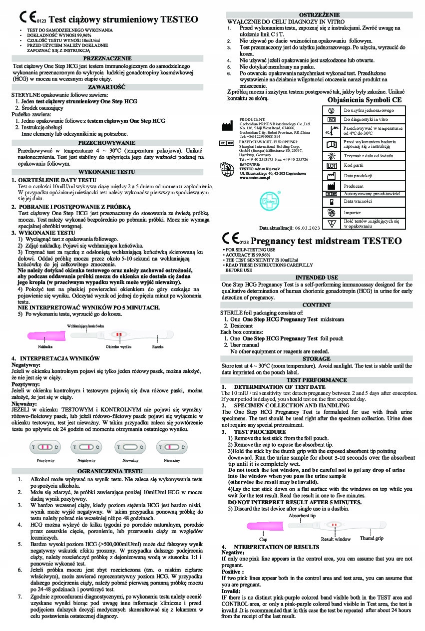 Тест на беременность Testeo jet — это тест, который можно проводить самостоятельно. При нормальной беременности гормон ХГЧ можно обнаружить в моче уже 2-4 дня после зачатия. ХГЧ – гормон, который первым указывает на то, что женщина беременна, он появляется сразу после оплодотворения – его наличие выявляется с помощью теста на беременность. Тест очень прост в выполнении и быстр, а это значит, что он занимает не более 2 минут, а результат можно прочитать в течение 5 минут. Точностьпо данным клинических испытаний составляет более 99,96%.