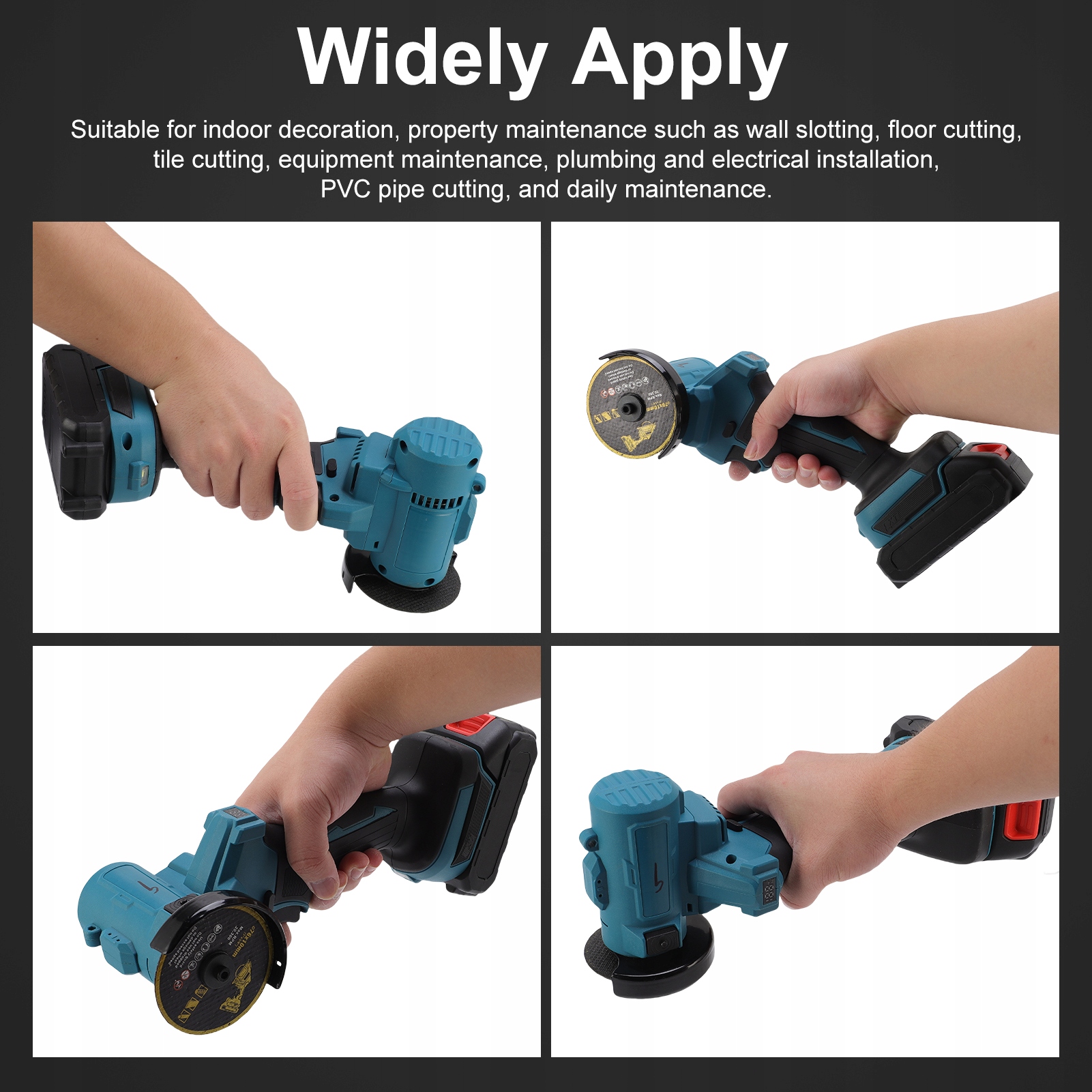 3. Удобная конструкция: УШМ с индикатором заряда аккумулятора и светодиодной подсветкой. Нажмите переключатель бесступенчатой регулировки скорости, чтобы отрегулировать скорость резки. Эргономичная конструкция ручки для работы одной рукой.