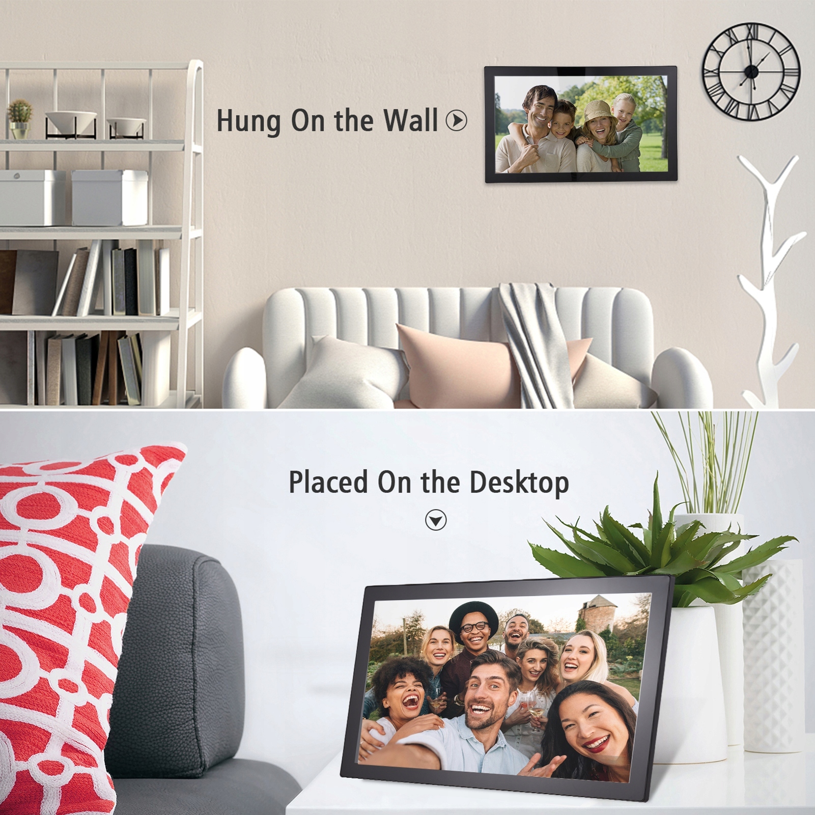 1. [Легко обмениваться] С помощью Wi -Fi Communication Эта цифровая фотокадра позволяет вам немедленно и беспроводным образом обмениваться фотографиями и видео с любимыми из любого места, используя приложение. Эта функция позволяет вам поддерживать связь с семьей и друзьями.