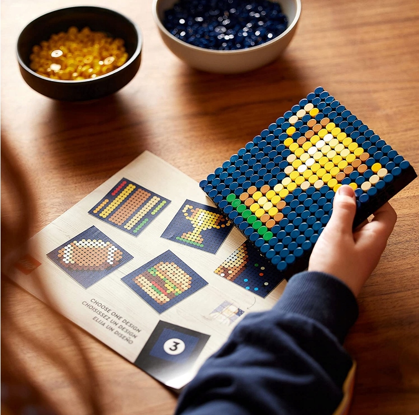 Это Набор позволит вам укрепить связи с семьей и друзьями. Он включает в себя простую в создании палитру, позволяющую подбирать цвета плиток, а также девять вариантов изображений в каждой из четырех категорий: еда, узоры, значки и интересы. Готовые изображения можно объединить в одно художественное произведение. Вы также можете объединить усилия и вместе собрать большую фигурку культовой минифигурки LEGO.
