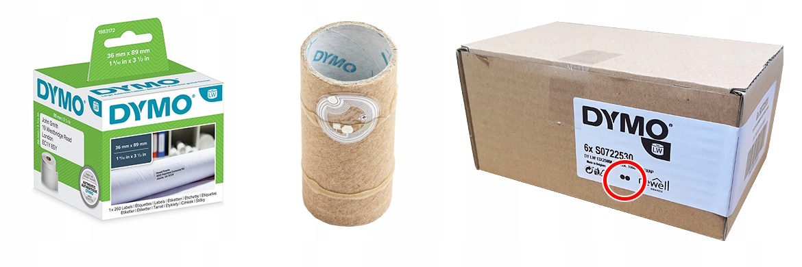- Внутри рулона конверт с логотипом DYMO и чипом