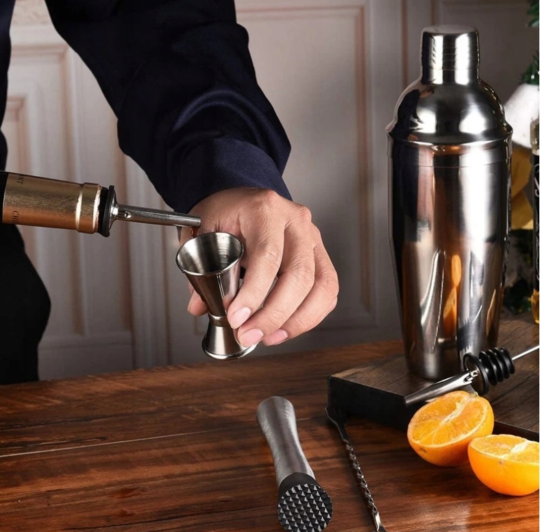 Это высококачественный набор для коктейлей, содержащий 22 различных инструментов, все из нержавеющей стали, чистые, инструменты не требуются, коктейль-бар сделан профессиональными барменами, устойчив к впитыванию, обесцвечиванию и долговечен. Идеальный подарок как для новичков, так и для профессионалов, поскольку в нем есть все необходимое. Вы можете это проверить.