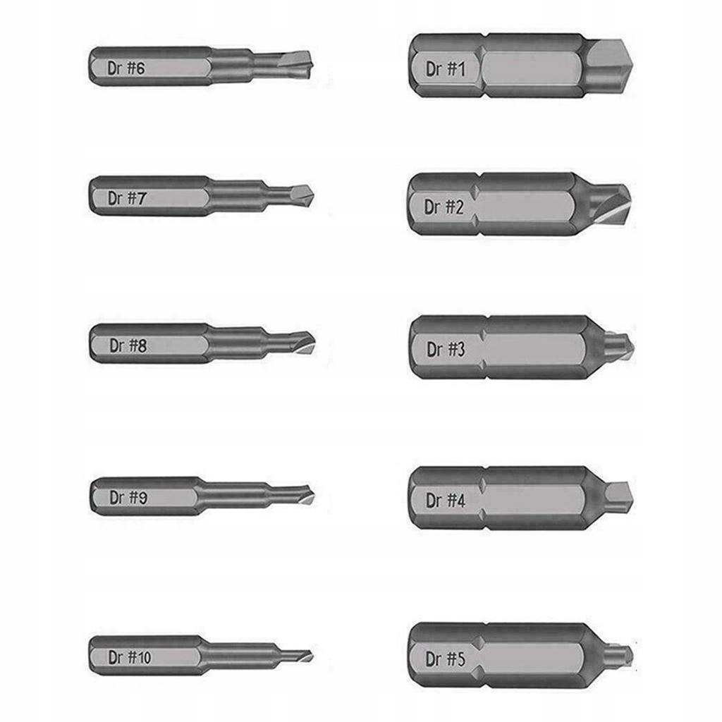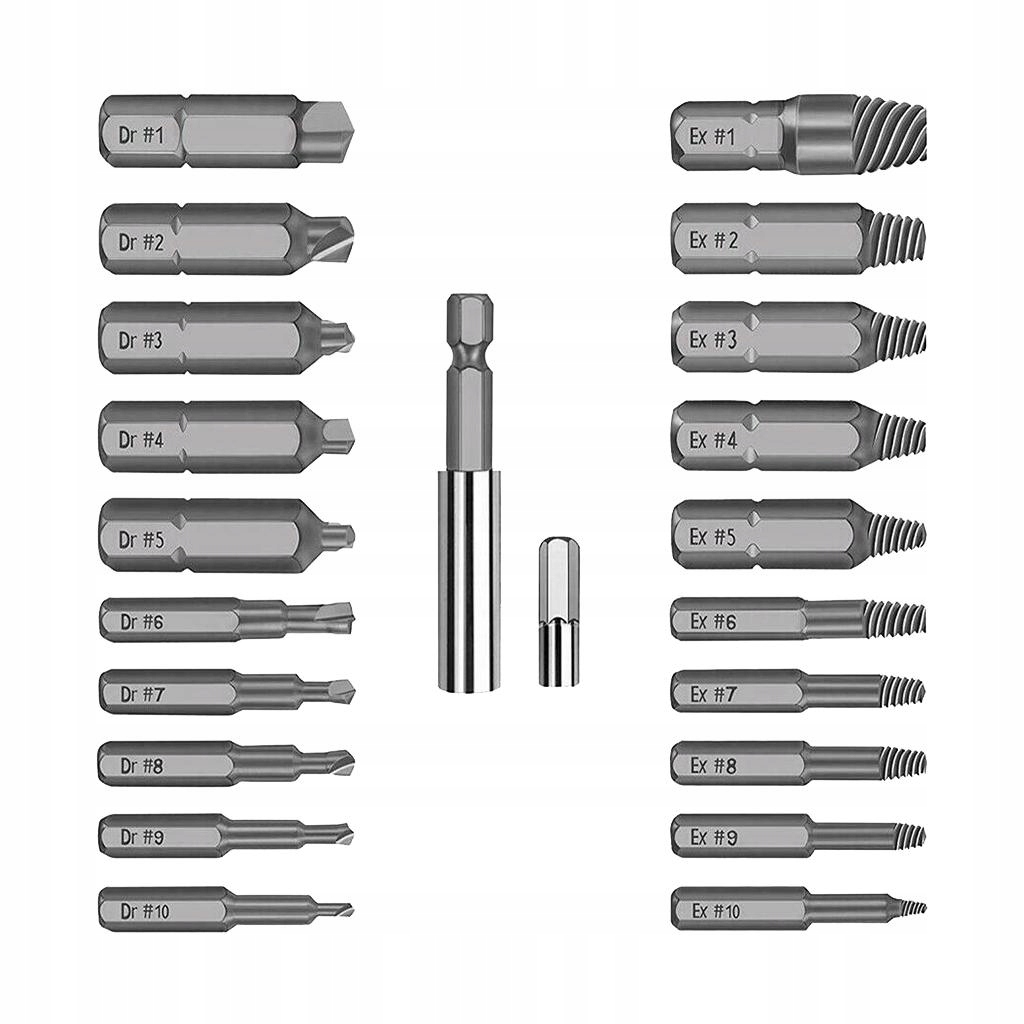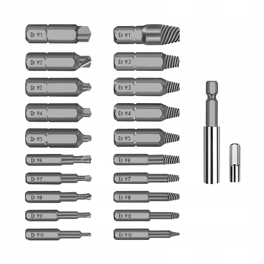 В комплект экстрактора входят 20 съемных экстракторов 10 различных размеров, отвечающих всем вашим требованиям. Подходит для шурупов или шурупов любых размеров.