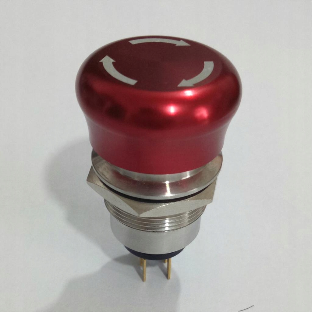 Металлическая водонепроницаемая кнопка аварийной остановки с диаметром открытого отверстия 22 мм.