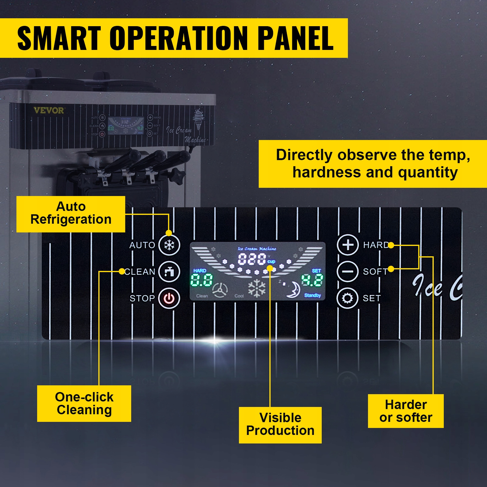 Время, температура, твердость и количество мороженого могут отображаться на экране для прямого наблюдения. Вы можете свободно модулировать в соответствии с различными вкусами. Кроме того, очистка одним кликом позволяет быстро и автоматическая очистка машины.