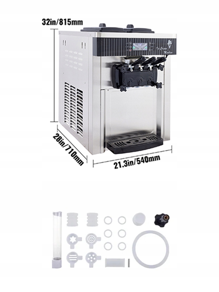 Здесь мы предлагаем 3 различных вкуса (2 отдельных вкуса и 1 смешанный вкус), чтобы обогатить ваш выбор и удовлетворить различные требования ваших клиентов. Кроме того, прикреплены 4 отдельных сопла, благодаря тому, к которому вы можете сделать мороженое отличаться от других, добавляя большую радость к приготовлению мороженого.