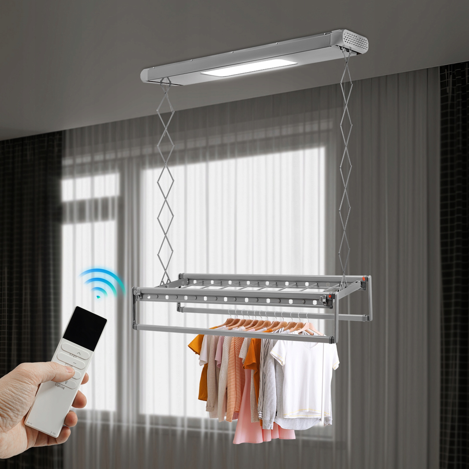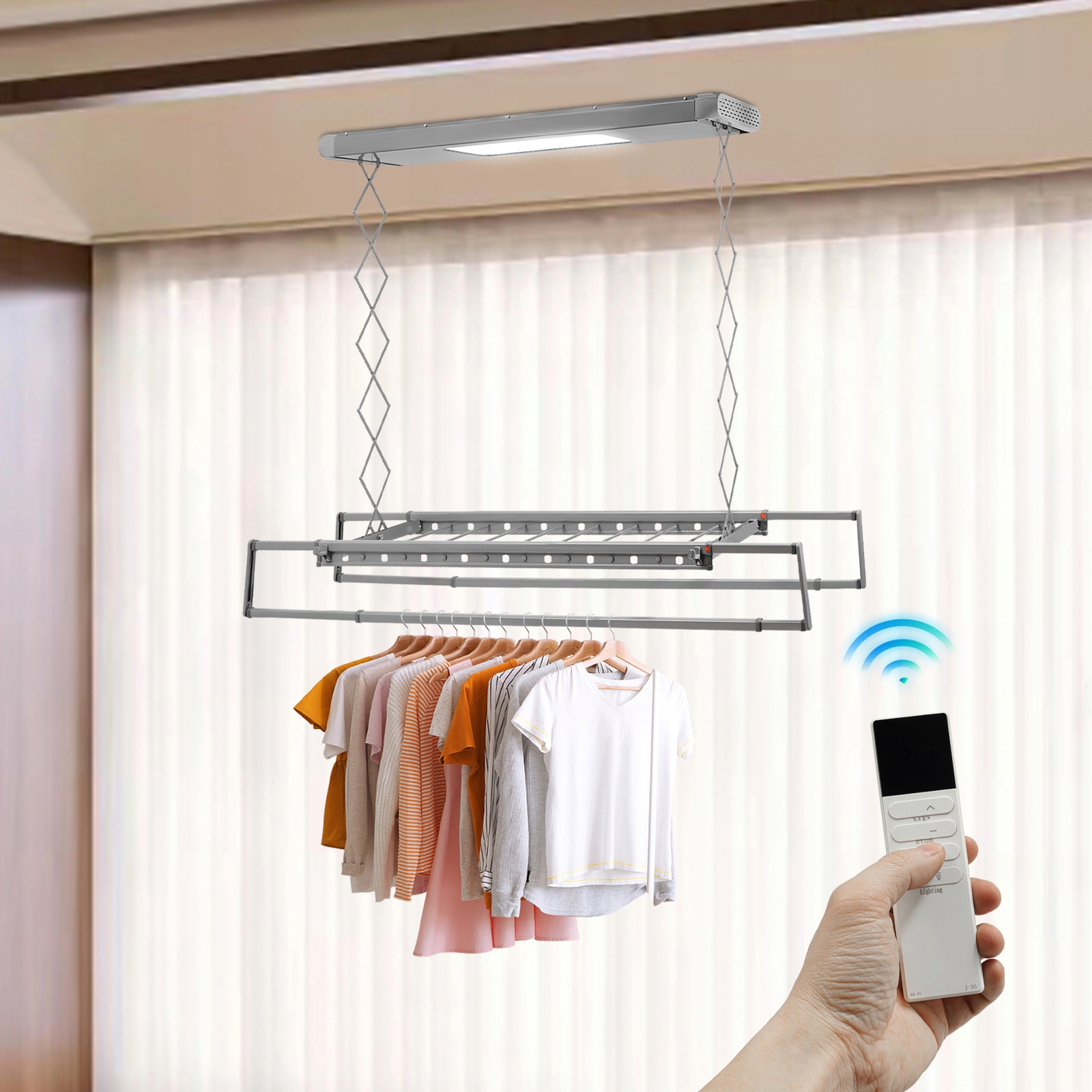 Регулируемая высота: его можно опустить на 110 см от потолка и остановить на любой высоте с помощью пульта дистанционного управления, что дает вам свободу сушить одежду без необходимости использования дополнительная подвеска.