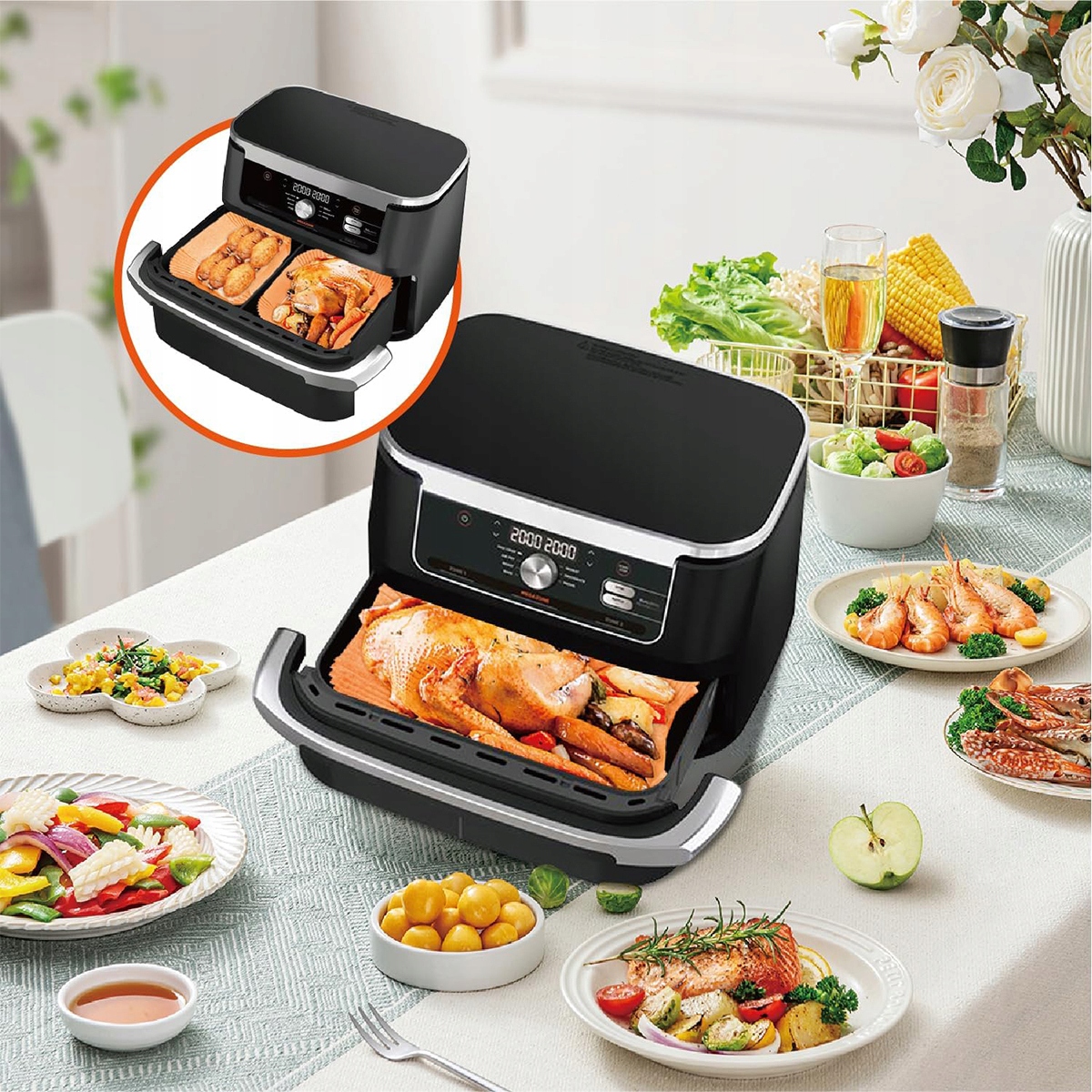 - Эта бумага для выпечки для фритюрницы Ninja Megazone Cosori Dual Blaze Twinfry 10L идеально подходит для выпечки, приготовления на пару, гриля, демонстрации на вечеринках и многого другого! Одноразовая бумага для выпечки для фритюрницы Ninja упрощает приготовление пищи.