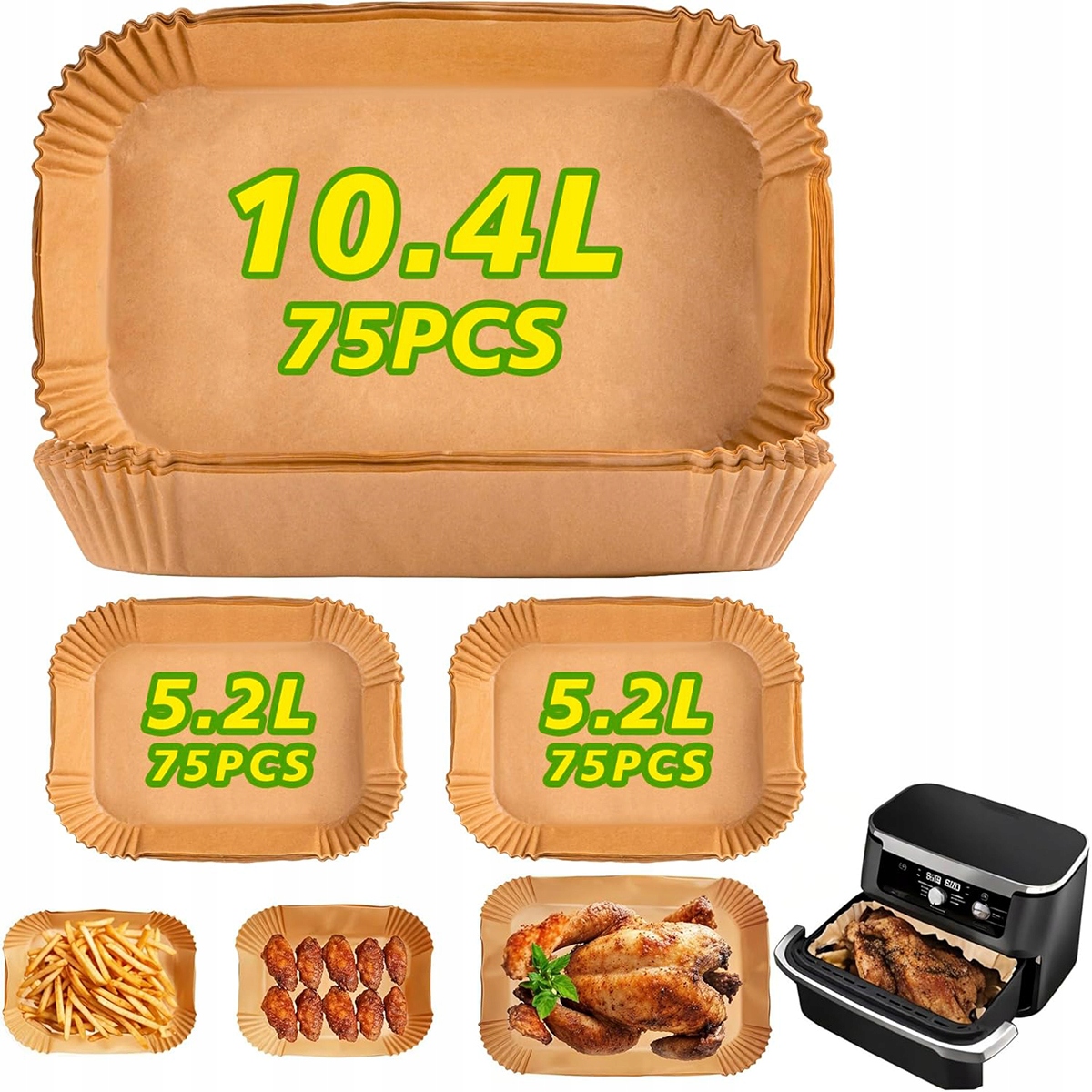 225 кусочков бумаги для выпечки для аэрофритюрницы (150 маленьких кусочков до 5,2 л + 75 больших кусочков до 10,4 л)