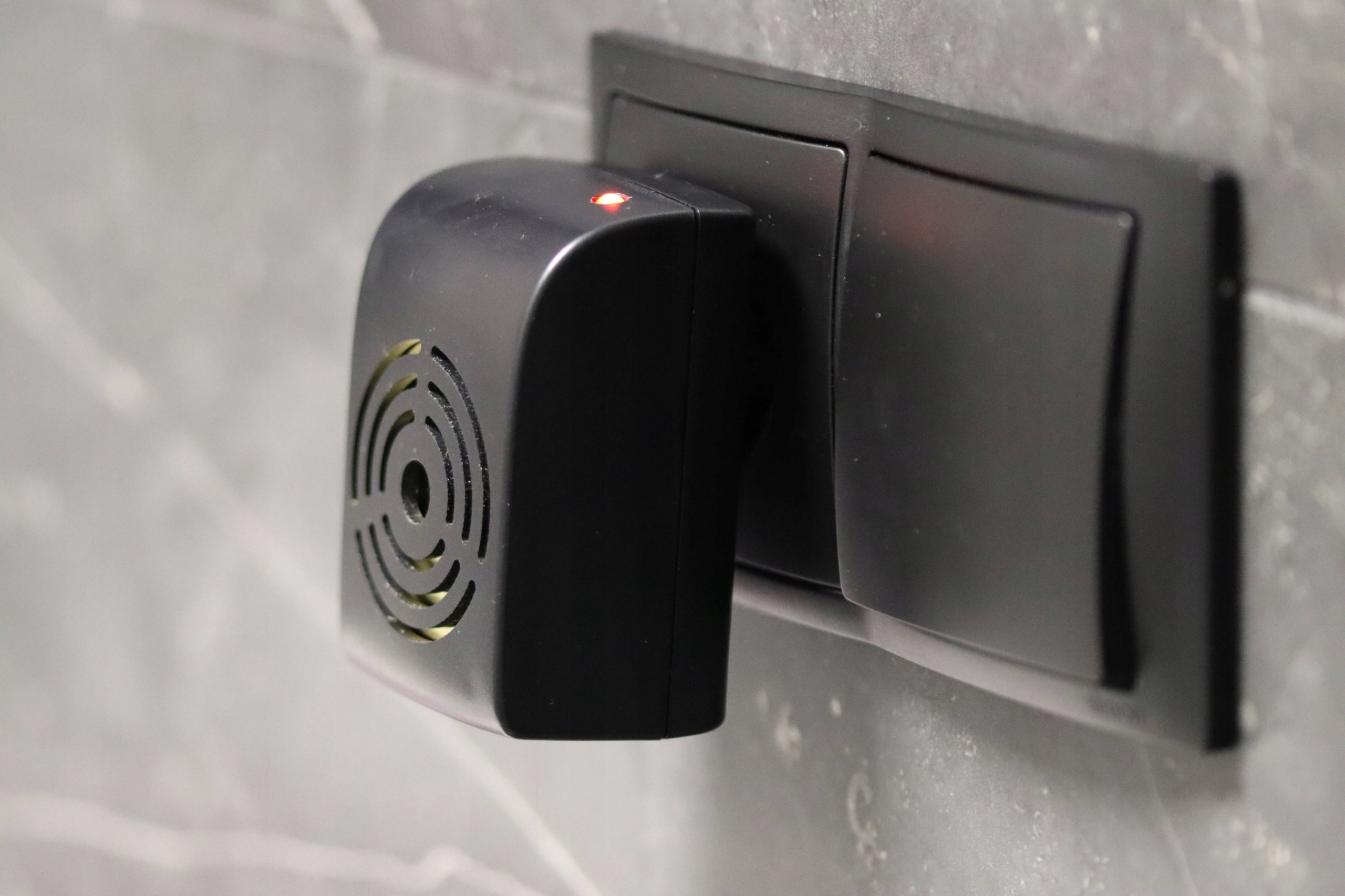 Устройство подключается к регулярному розетку. Красный светодиод указывает, что он работает должным образом. Ультразвуковые волны испускаются в пакете на частотах от самых высоких до самого низкого от дюжины или около того второго перерыва между пакетами